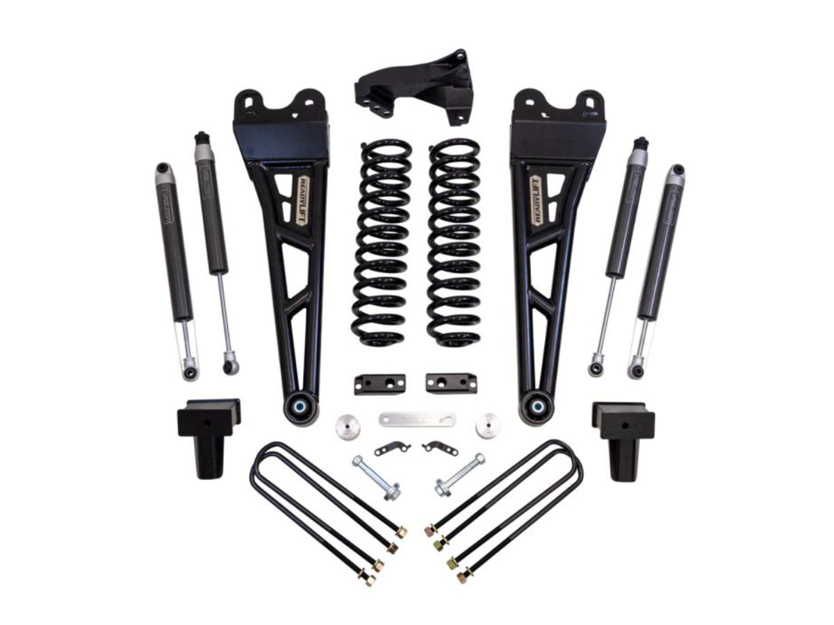 ReadyLIFT Suspension is now offering our first 4" Coil Spring Lift Kit fitting 2017-2022 Ford Super Duty F250/F350 4WD Power Stroke® trucks with new Tubular Radius Arms. The 49-27421 includes front and rear Falcon 1.1 Monotube series performance shocks with our venerable front track bar relocation bracket, tubular radius arms, and rear fabricated blocks. This delivers an excellent alternative for lifting a F250/F350 Super Duty trucks to fit larger tires. The coil spring system allows for increased tire sizes and widths along with providing improved ground clearance on a head-turning stance! Many consider this lift height the ’sweet spot’ for Super Duty driving dynamics and maximum tire size while maintaining everyday practicality.
