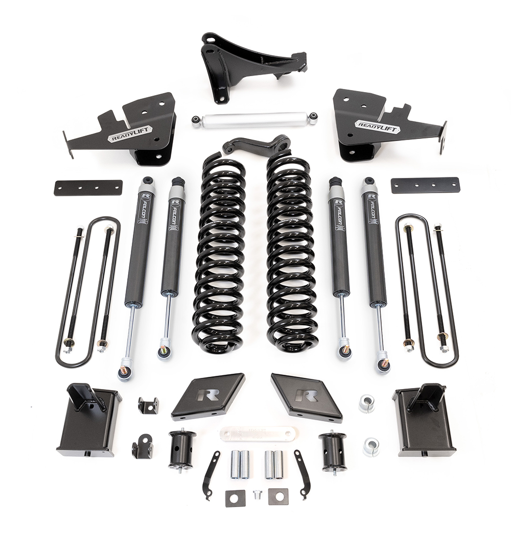 ReadyLIFT Suspension is now offering two new 7” Coil Spring Lift Kits made to fit 2017-2022 Ford Super Duty F250/F350 4WD trucks. The 49-27720 includes our premium high-performance Falcon 1.1 Monotube series shocks. The kit has our popular cast front track bar relocation bracket, heavy-duty radius arm drop brackets, and rear fabricated blocks with integrated bump stop tangs. This gives Super Duty owners an excellent alternative for lifting their trucks to fit larger tires. This new 7” lift system will raise the 2020-2022 4WD Super Duty truck 7” (2017-2019 SD 6.5"). The coil spring system allows for increased tire sizes and widths along with providing improved ground clearance on the street or trail. Super Duty customers will love the head-turning stance! This premiere big lift kit allows for up to 38" tall tires. The ReadyLIFT 7" Coil Spring Lift Kit system for 2017-2022 Ford Super Duty trucks also includes model-specific brake line extension brackets, our time-tested bump stop extension brackets, and new front sway bar frame mount extension brackets to keep the factory sway bar at the proper geometry. Super Duty wants rugged looks and a smooth but controlled ride, the new ReadyLIFT 7” Coil Spring Suspension Kit System is the perfect solution.