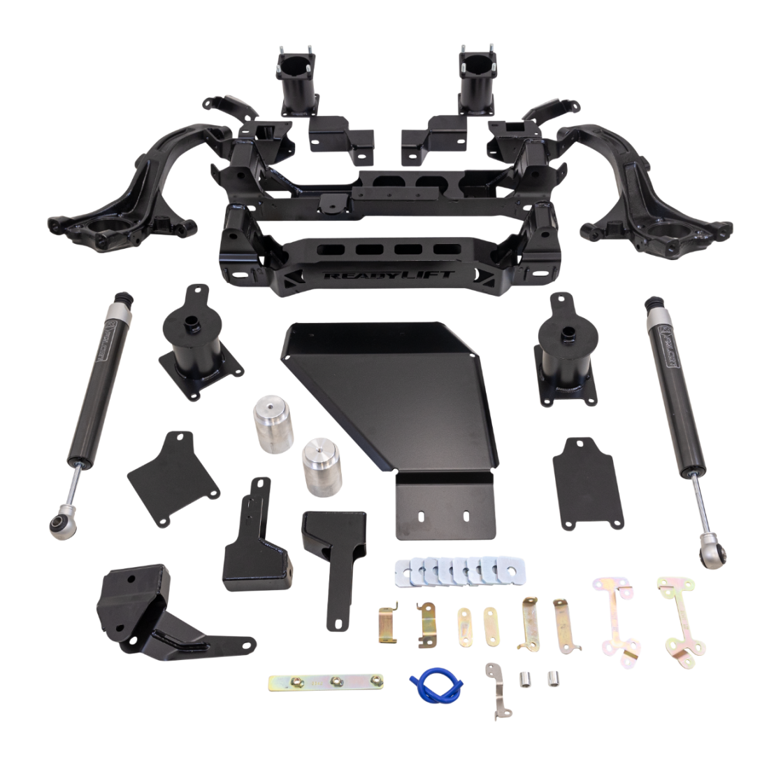 The ReadyLIFT sub-assembly design features a truly innovative approach to dropping the differential. The differential drop system is engineered for easy installation. The sub-assembly correctly positions the differential to maintain CV axle and driveline angles. With 44-52620 (non-rear air) & 44-52660 (with rear air) lift kits, you can rest assured premature tire wear won’t be an issue. The ReadyLIFT system is built around maintaining proper alignment and geometry specifications. Additionally, ReadyLIFT also includes thoughtful accessories such as new bump stop extensions all the way around as well as sway bar frame mount brackets to keep the front sway bar in a factory geometry. All of this contributes to an excellent driving and handling suspension system that truly elevates the typical Toyota Tundra truck!6” Big Lift Features and Benefits:· - Max tire with trimming 5.5" backspace (10-13mm Offset) on 20x9 with 37" tires·· - Retains factory turning radius