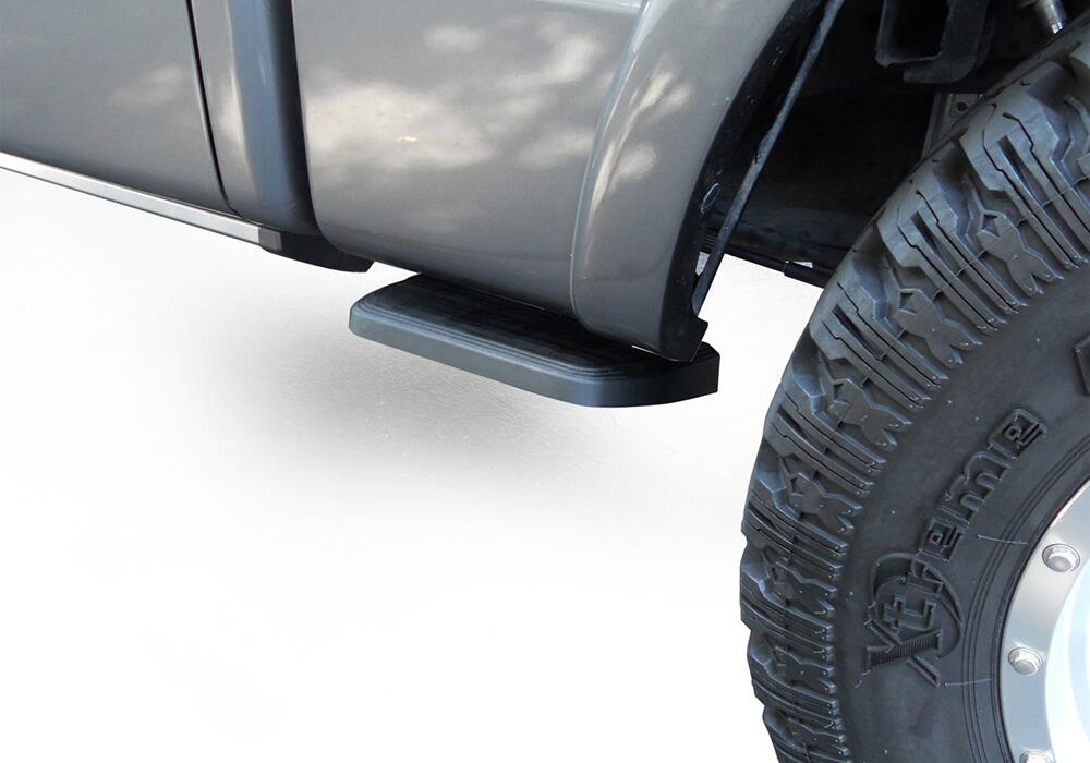 The BedStep 2 is a side-mounted, retractable truck bed step that installs just behind the cab—between the cab and rear wheel—on either side of your truck bed. It flips down or retracts using a simple foot nudge, allowing safe and easy access to your bed, toolbox, or cargo area.