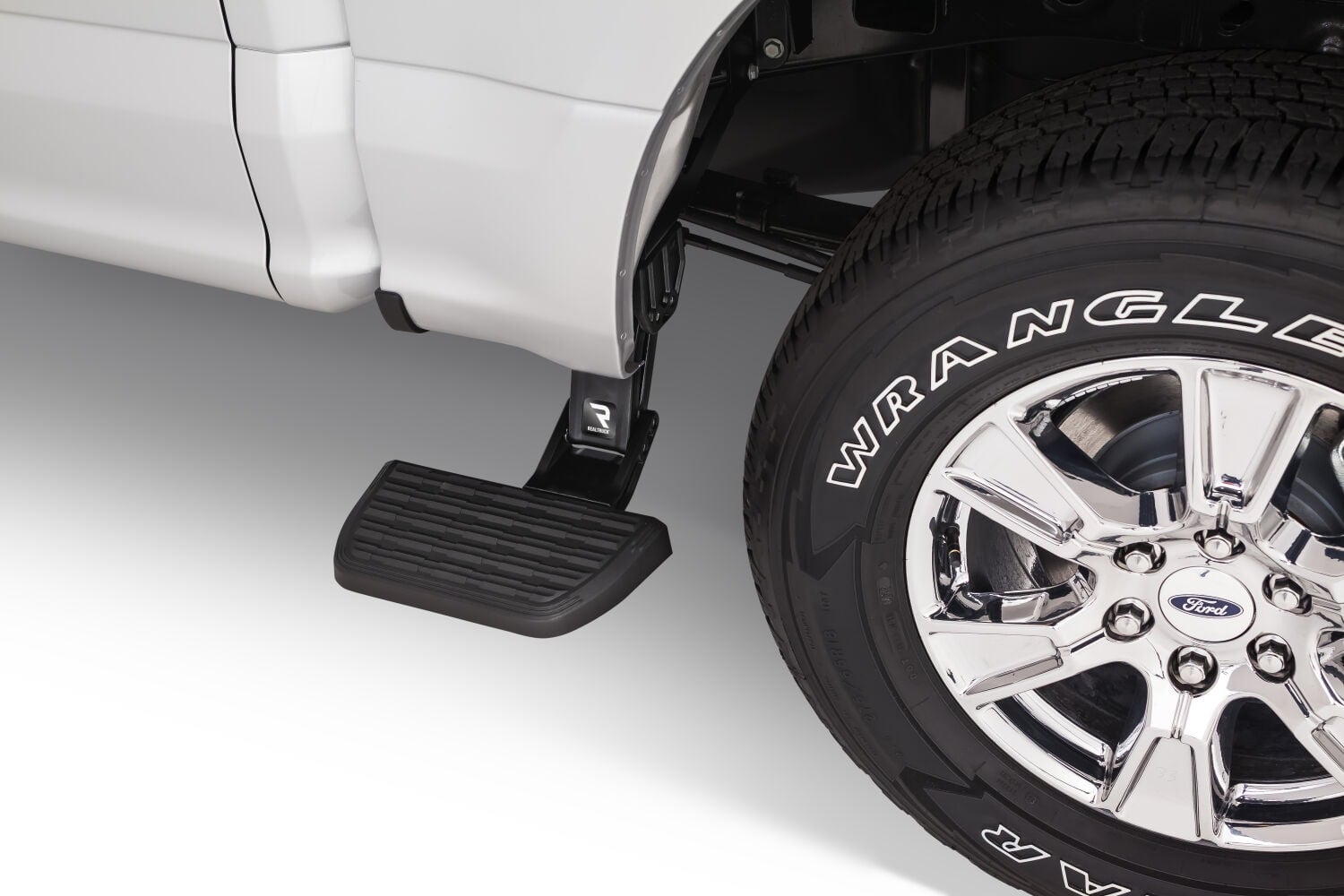 The BedStep 2 is a side-mounted, retractable truck bed step that installs just behind the cab—between the cab and rear wheel—on either side of your truck bed. It flips down or retracts using a simple foot nudge, allowing safe and easy access to your bed, toolbox, or cargo area.