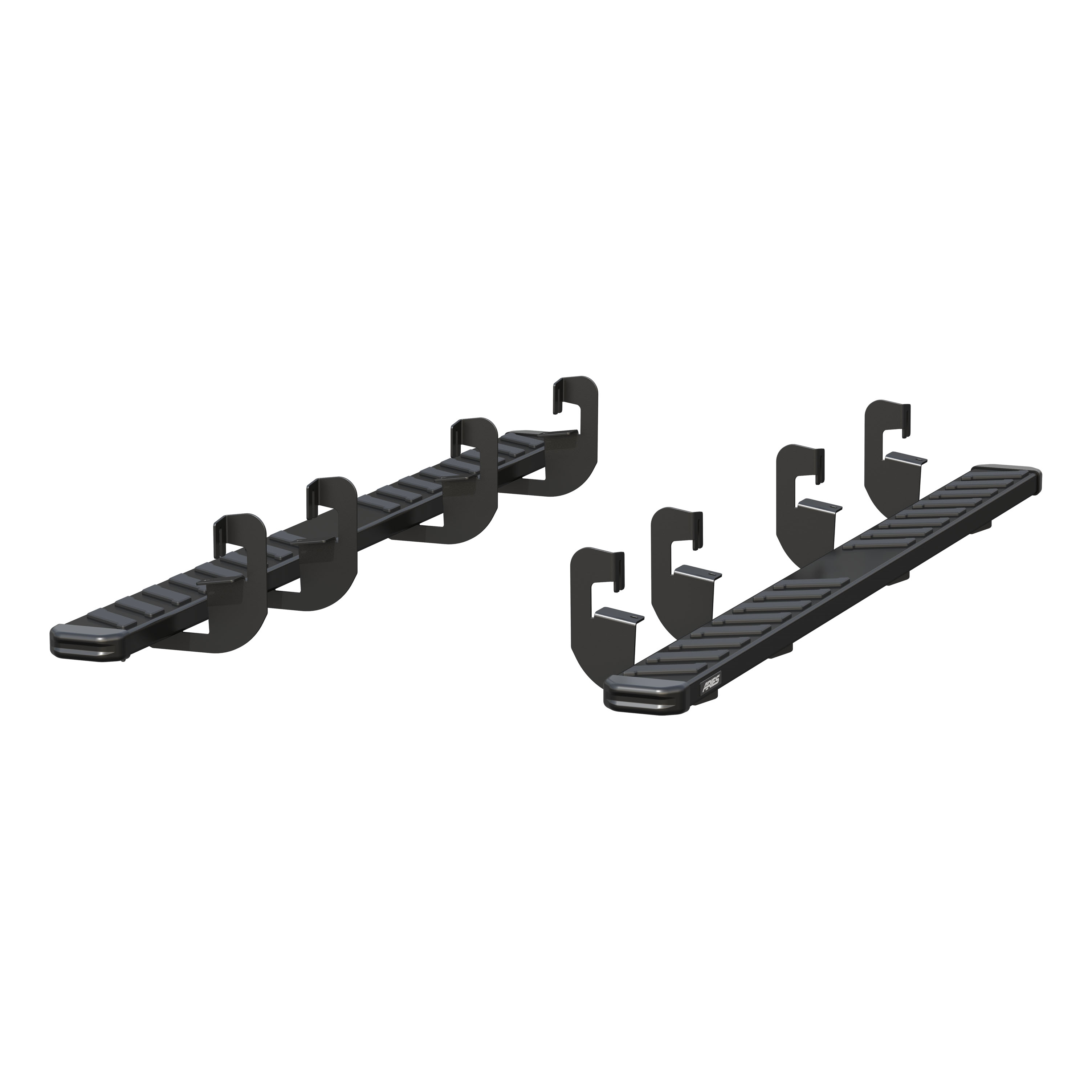 Upgrade your vehicle with the perfect balance of bold style and everyday functionality. The ARIES® NovaTrac™ Running Boards are engineered to offer a sleek, OE-inspired look while delivering superior strength and safety for every journey. With their 6" wide, streamlined profile, NovaTrac™ running boards offer safe footing without sacrificing style. Each running board is reinforced with extra-wide, non-skid step pads, designed to provide secure traction no matter the weather. Built from rigid steel with a carbide black powder coat finish, NovaTrac™ running boards combine lasting shine with exceptional rust and corrosion resistance, ensuring years of dependable use. Durable TPO plastic end caps add a refined finishing touch, while enhancing resilience against wear and tear. Whether you're upgrading for function or style, NovaTrac™ running boards offer an easy, custom solution for your vehicle. VersaTrac™ mounting brackets sold separately.