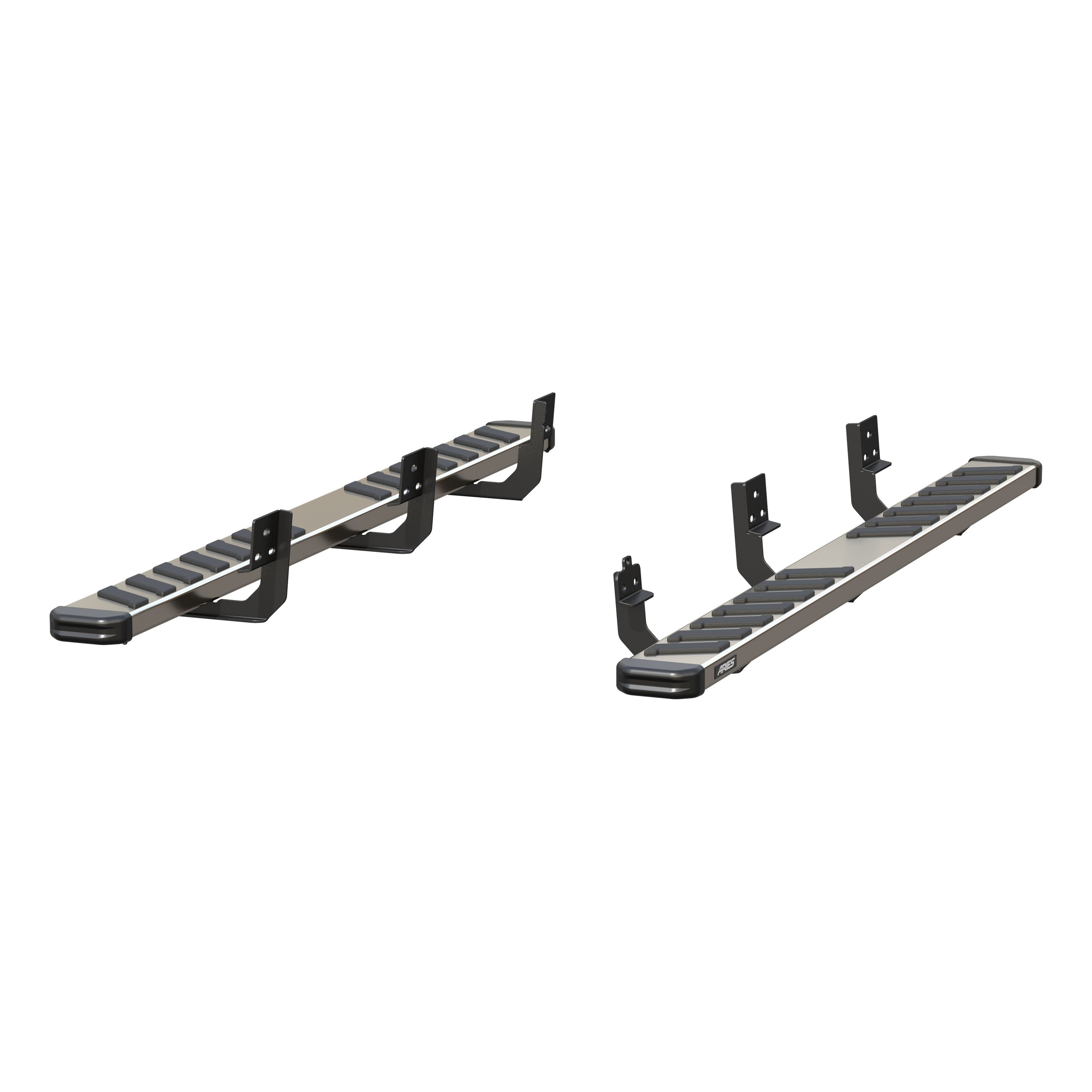 Upgrade your vehicle with the perfect balance of bold style and everyday functionality. The ARIES® NovaTrac™ Running Boards are engineered to offer a sleek, OE-inspired look while delivering superior strength and safety for every journey. With their 6" wide, streamlined profile, NovaTrac™ running boards offer safe footing without sacrificing style. Each running board is reinforced with extra-wide, non-skid step pads, designed to provide secure traction no matter the weather. Built from rigid steel with a carbide black powder coat finish, NovaTrac™ running boards combine lasting shine with exceptional rust and corrosion resistance, ensuring years of dependable use. Durable TPO plastic end caps add a refined finishing touch, while enhancing resilience against wear and tear. Whether you're upgrading for function or style, NovaTrac™ running boards offer an easy, custom solution for your vehicle. VersaTrac™ mounting brackets sold separately.