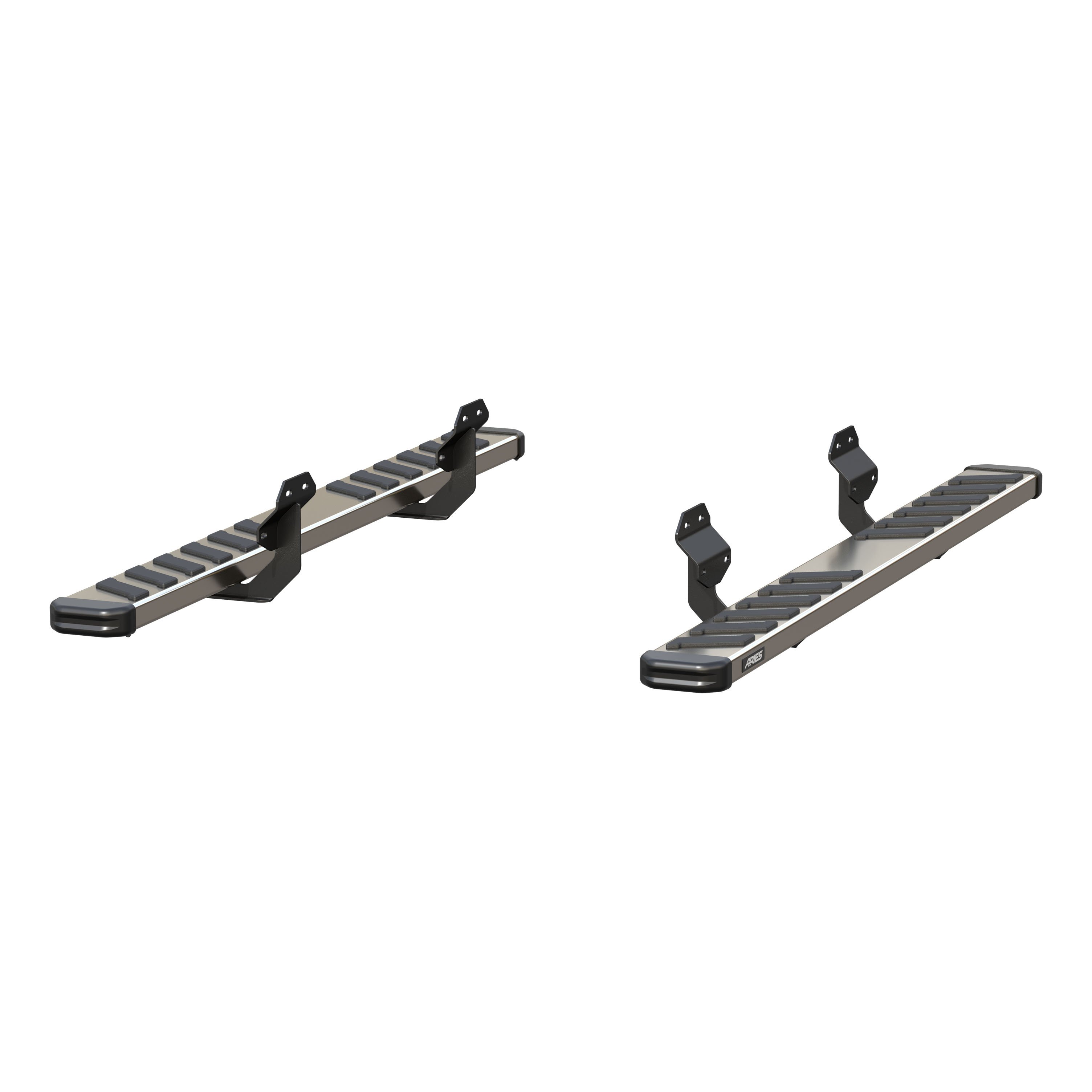 Upgrade your vehicle with the perfect balance of bold style and everyday functionality. The ARIES® NovaTrac™ Running Boards are engineered to offer a sleek, OE-inspired look while delivering superior strength and safety for every journey. With their 6" wide, streamlined profile, NovaTrac™ running boards offer safe footing without sacrificing style. Each running board is reinforced with extra-wide, non-skid step pads, designed to provide secure traction no matter the weather. Built from rigid steel with a carbide black powder coat finish, NovaTrac™ running boards combine lasting shine with exceptional rust and corrosion resistance, ensuring years of dependable use. Durable TPO plastic end caps add a refined finishing touch, while enhancing resilience against wear and tear. Whether you're upgrading for function or style, NovaTrac™ running boards offer an easy, custom solution for your vehicle. VersaTrac™ mounting brackets sold separately.