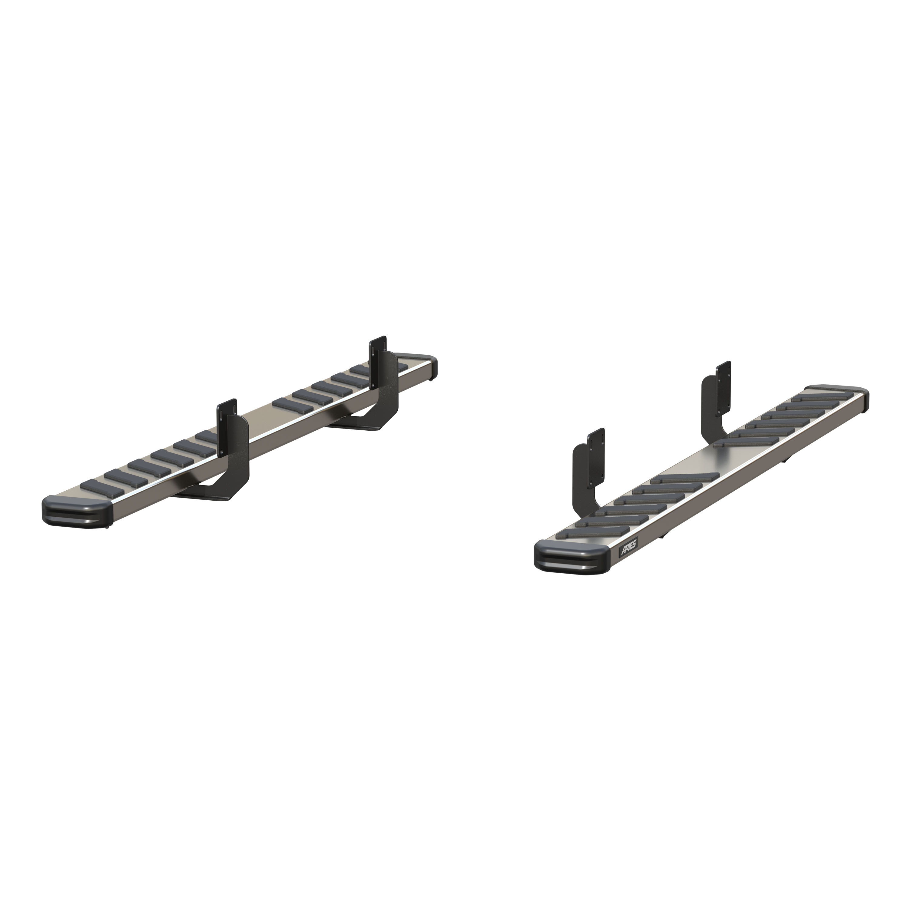Upgrade your vehicle with the perfect balance of bold style and everyday functionality. The ARIES® NovaTrac™ Running Boards are engineered to offer a sleek, OE-inspired look while delivering superior strength and safety for every journey. With their 6" wide, streamlined profile, NovaTrac™ running boards offer safe footing without sacrificing style. Each running board is reinforced with extra-wide, non-skid step pads, designed to provide secure traction no matter the weather. Built from rigid steel with a carbide black powder coat finish, NovaTrac™ running boards combine lasting shine with exceptional rust and corrosion resistance, ensuring years of dependable use. Durable TPO plastic end caps add a refined finishing touch, while enhancing resilience against wear and tear. Whether you're upgrading for function or style, NovaTrac™ running boards offer an easy, custom solution for your vehicle. VersaTrac™ mounting brackets sold separately.