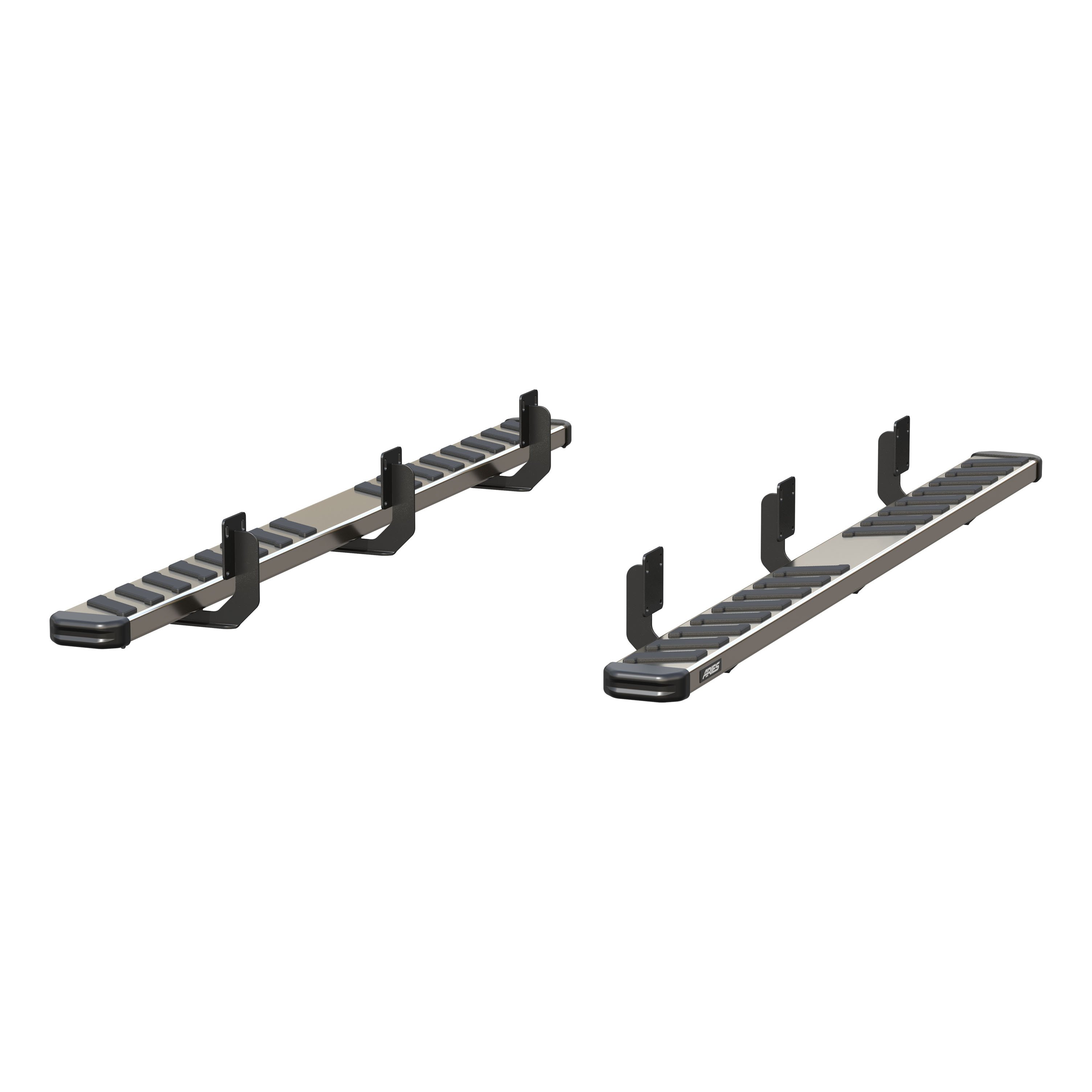 Upgrade your vehicle with the perfect balance of bold style and everyday functionality. The ARIES® NovaTrac™ Running Boards are engineered to offer a sleek, OE-inspired look while delivering superior strength and safety for every journey. With their 6" wide, streamlined profile, NovaTrac™ running boards offer safe footing without sacrificing style. Each running board is reinforced with extra-wide, non-skid step pads, designed to provide secure traction no matter the weather. Built from rigid steel with a carbide black powder coat finish, NovaTrac™ running boards combine lasting shine with exceptional rust and corrosion resistance, ensuring years of dependable use. Durable TPO plastic end caps add a refined finishing touch, while enhancing resilience against wear and tear. Whether you're upgrading for function or style, NovaTrac™ running boards offer an easy, custom solution for your vehicle. VersaTrac™ mounting brackets sold separately.