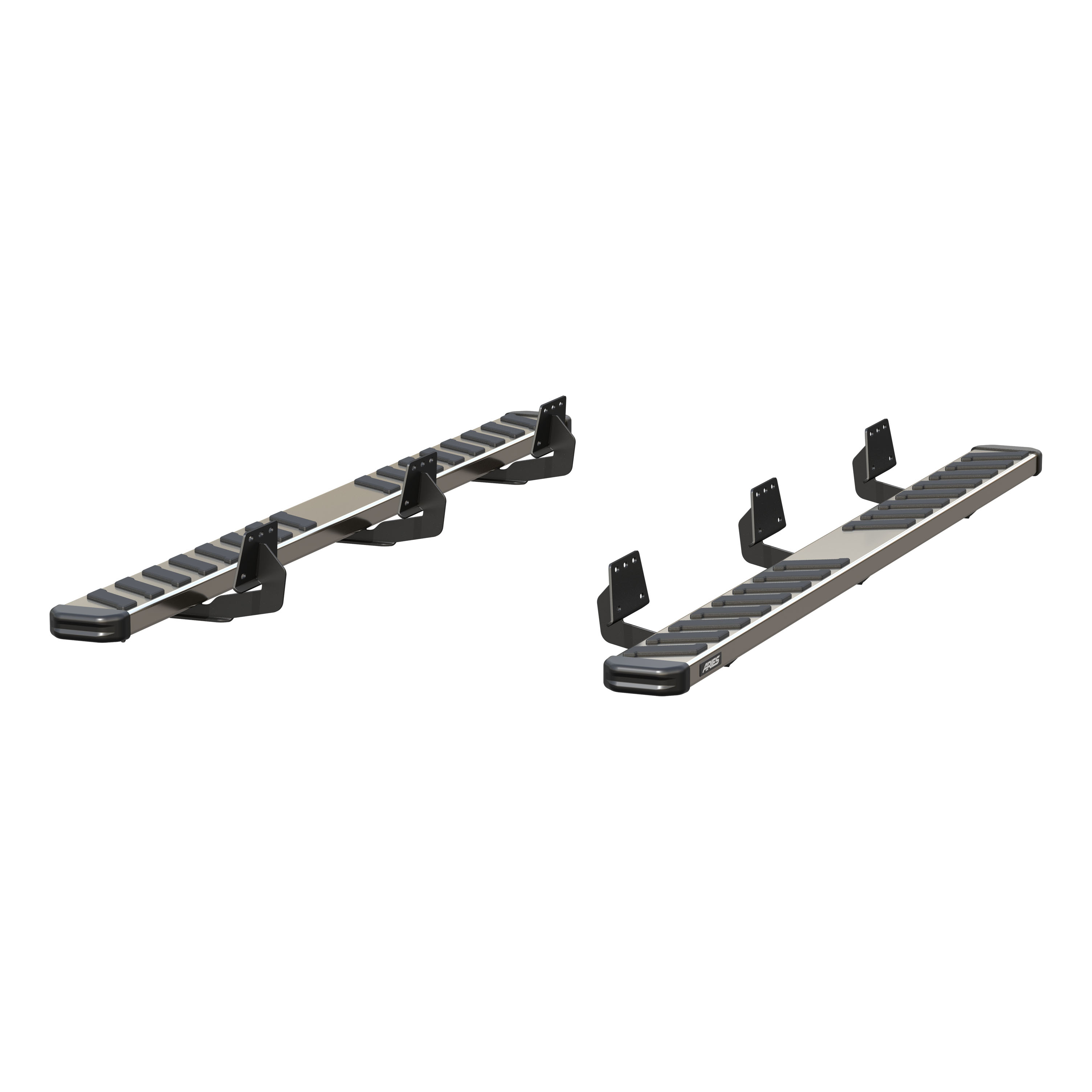 Upgrade your vehicle with the perfect balance of bold style and everyday functionality. The ARIES® NovaTrac™ Running Boards are engineered to offer a sleek, OE-inspired look while delivering superior strength and safety for every journey. With their 6" wide, streamlined profile, NovaTrac™ running boards offer safe footing without sacrificing style. Each running board is reinforced with extra-wide, non-skid step pads, designed to provide secure traction no matter the weather. Built from rigid steel with a carbide black powder coat finish, NovaTrac™ running boards combine lasting shine with exceptional rust and corrosion resistance, ensuring years of dependable use. Durable TPO plastic end caps add a refined finishing touch, while enhancing resilience against wear and tear. Whether you're upgrading for function or style, NovaTrac™ running boards offer an easy, custom solution for your vehicle. VersaTrac™ mounting brackets sold separately.