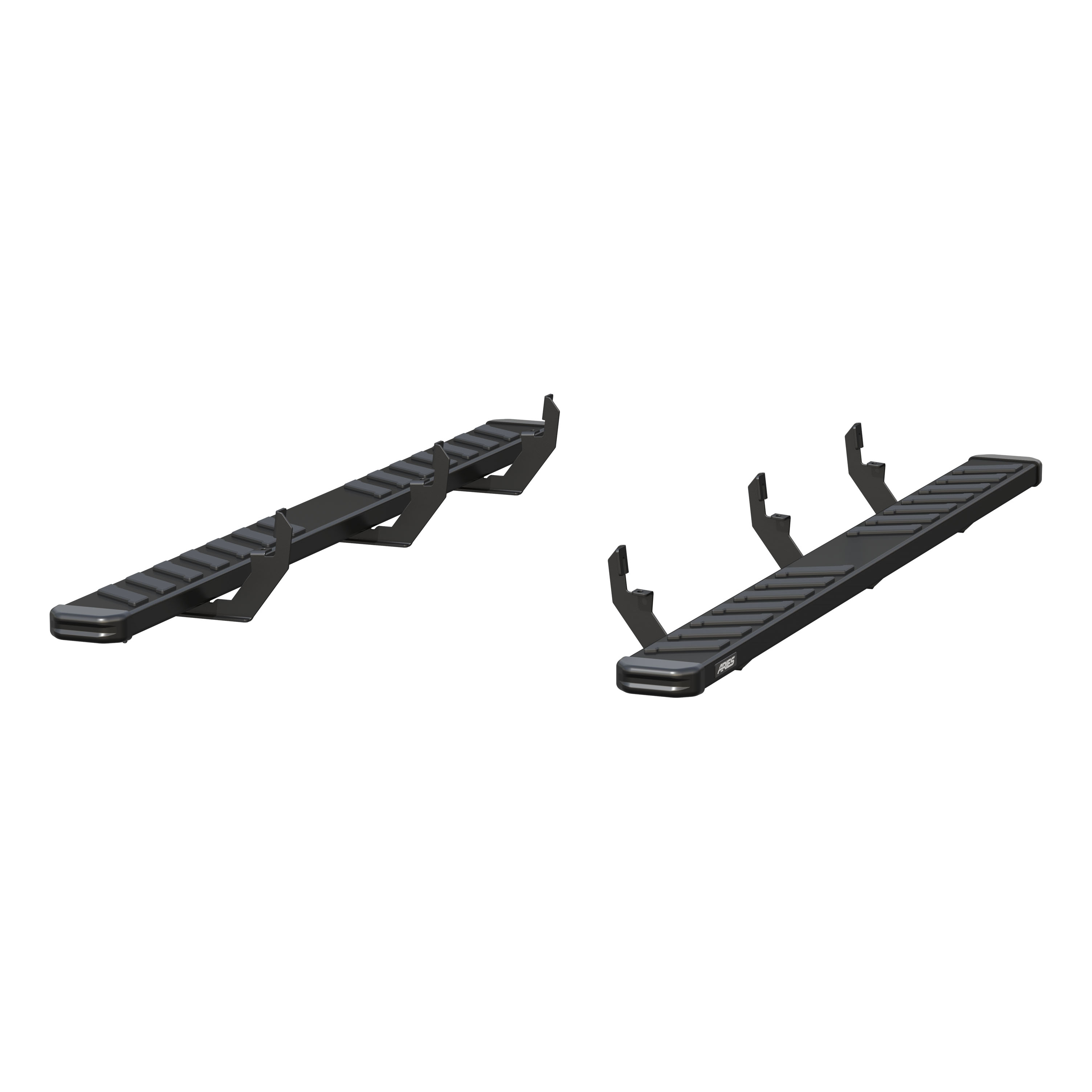 Upgrade your vehicle with the perfect balance of bold style and everyday functionality. The ARIES® NovaTrac™ Running Boards are engineered to offer a sleek, OE-inspired look while delivering superior strength and safety for every journey. With their 6" wide, streamlined profile, NovaTrac™ running boards offer safe footing without sacrificing style. Each running board is reinforced with extra-wide, non-skid step pads, designed to provide secure traction no matter the weather. Built from rigid steel with a carbide black powder coat finish, NovaTrac™ running boards combine lasting shine with exceptional rust and corrosion resistance, ensuring years of dependable use. Durable TPO plastic end caps add a refined finishing touch, while enhancing resilience against wear and tear. Whether you're upgrading for function or style, NovaTrac™ running boards offer an easy, custom solution for your vehicle. VersaTrac™ mounting brackets sold separately.