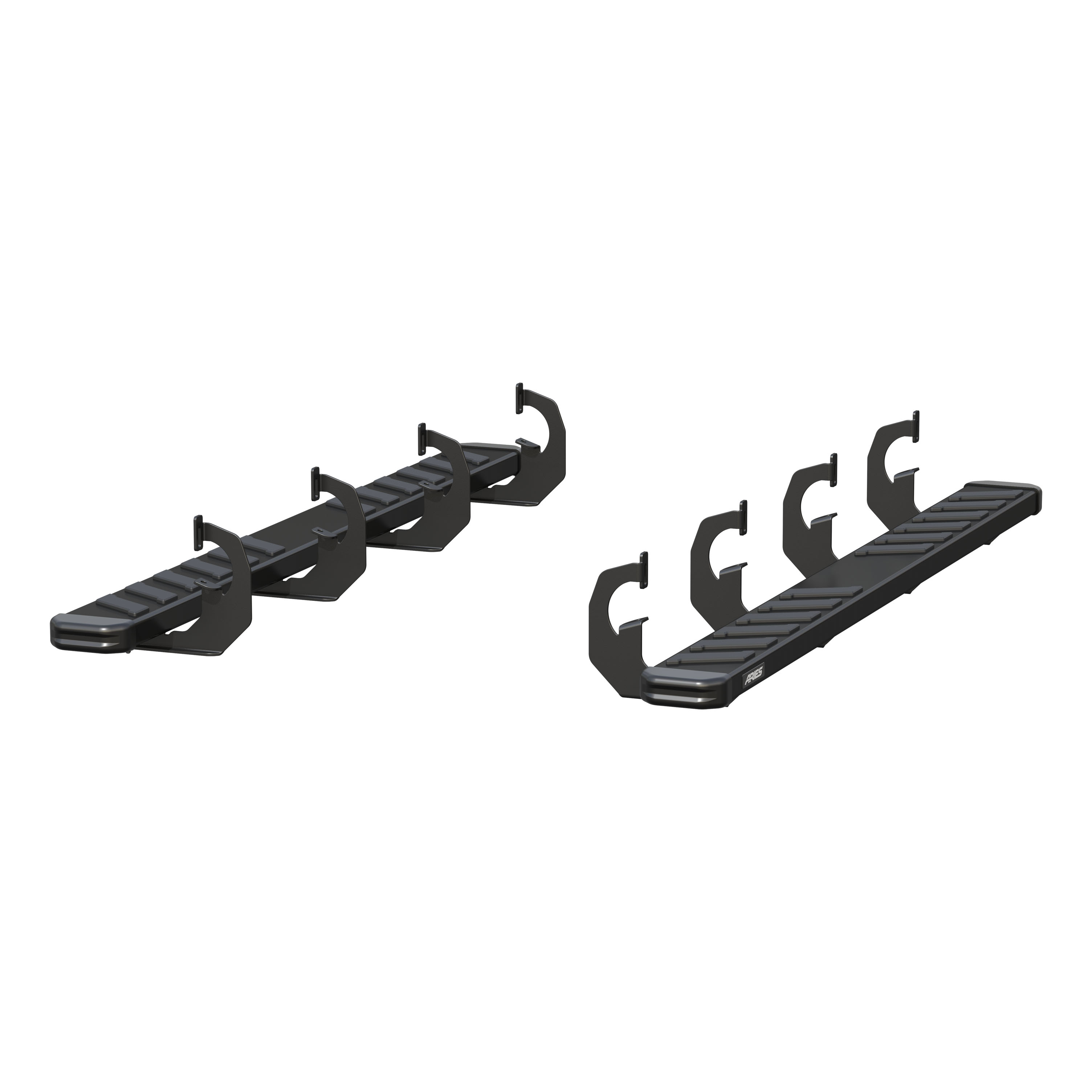 Upgrade your vehicle with the perfect balance of bold style and everyday functionality. The ARIES® NovaTrac™ Running Boards are engineered to offer a sleek, OE-inspired look while delivering superior strength and safety for every journey. With their 6" wide, streamlined profile, NovaTrac™ running boards offer safe footing without sacrificing style. Each running board is reinforced with extra-wide, non-skid step pads, designed to provide secure traction no matter the weather. Built from rigid steel with a carbide black powder coat finish, NovaTrac™ running boards combine lasting shine with exceptional rust and corrosion resistance, ensuring years of dependable use. Durable TPO plastic end caps add a refined finishing touch, while enhancing resilience against wear and tear. Whether you're upgrading for function or style, NovaTrac™ running boards offer an easy, custom solution for your vehicle. VersaTrac™ mounting brackets sold separately.