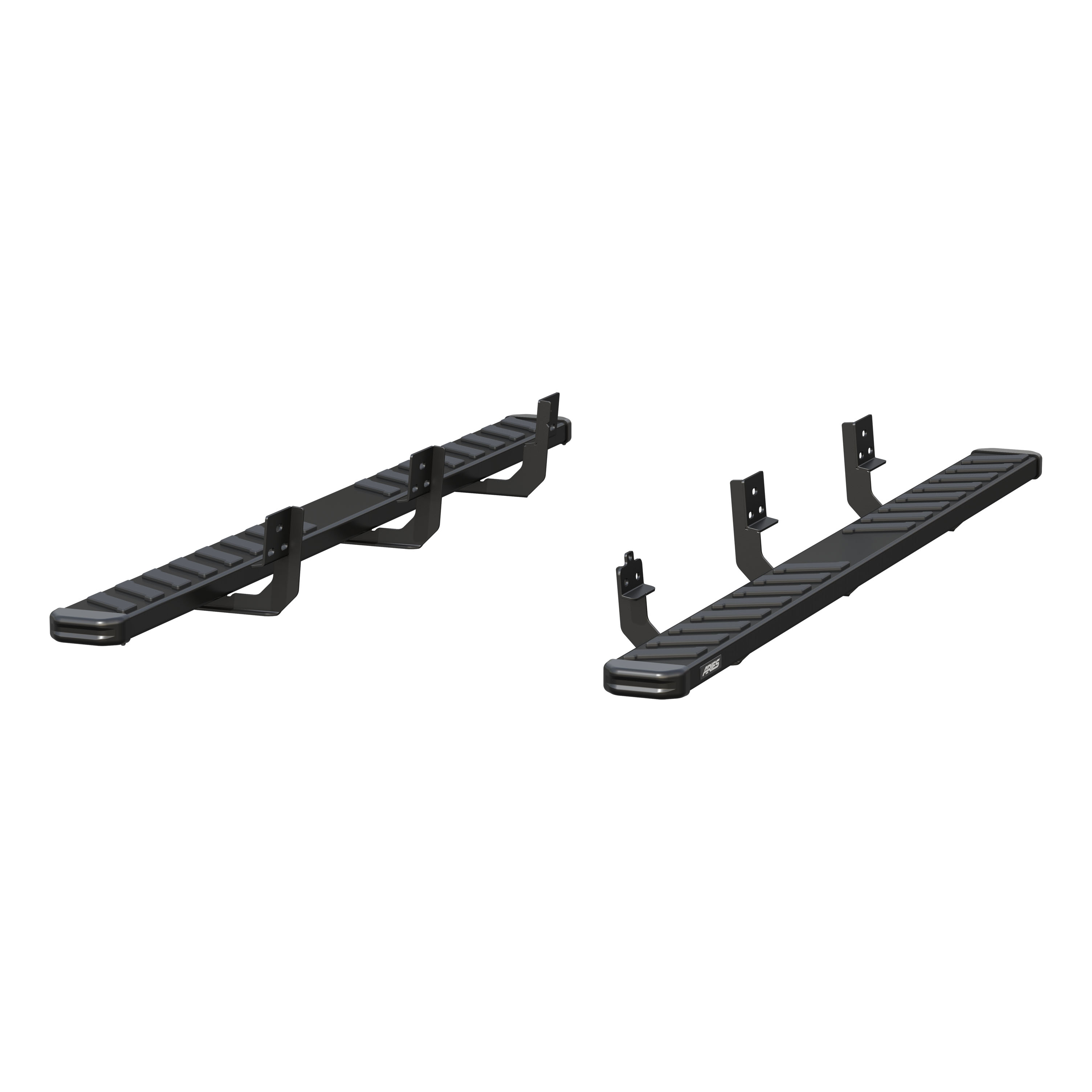 Upgrade your vehicle with the perfect balance of bold style and everyday functionality. The ARIES® NovaTrac™ Running Boards are engineered to offer a sleek, OE-inspired look while delivering superior strength and safety for every journey. With their 6" wide, streamlined profile, NovaTrac™ running boards offer safe footing without sacrificing style. Each running board is reinforced with extra-wide, non-skid step pads, designed to provide secure traction no matter the weather. Built from rigid steel with a carbide black powder coat finish, NovaTrac™ running boards combine lasting shine with exceptional rust and corrosion resistance, ensuring years of dependable use. Durable TPO plastic end caps add a refined finishing touch, while enhancing resilience against wear and tear. Whether you're upgrading for function or style, NovaTrac™ running boards offer an easy, custom solution for your vehicle. VersaTrac™ mounting brackets sold separately.