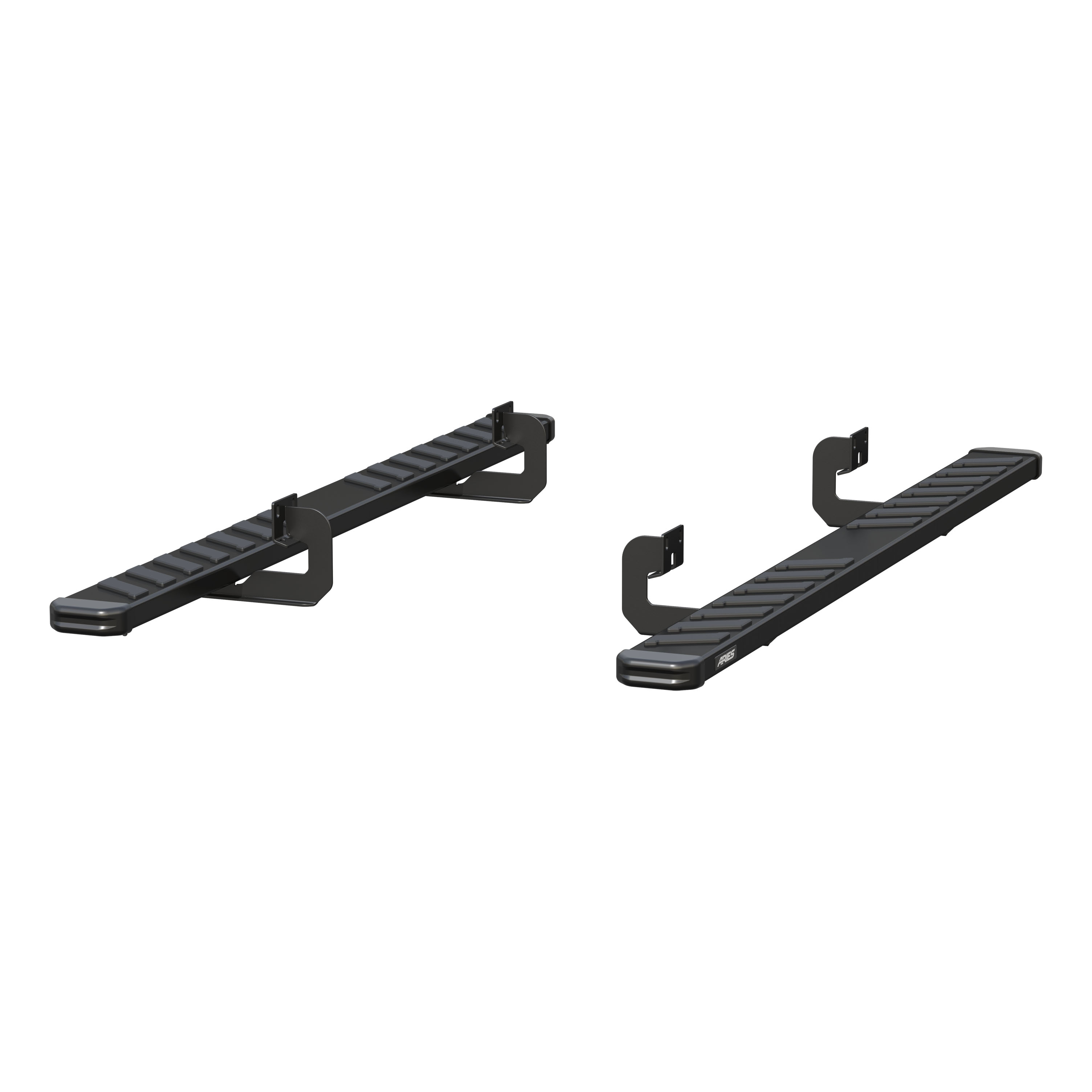 Upgrade your vehicle with the perfect balance of bold style and everyday functionality. The ARIES® NovaTrac™ Running Boards are engineered to offer a sleek, OE-inspired look while delivering superior strength and safety for every journey. With their 6" wide, streamlined profile, NovaTrac™ running boards offer safe footing without sacrificing style. Each running board is reinforced with extra-wide, non-skid step pads, designed to provide secure traction no matter the weather. Built from rigid steel with a carbide black powder coat finish, NovaTrac™ running boards combine lasting shine with exceptional rust and corrosion resistance, ensuring years of dependable use. Durable TPO plastic end caps add a refined finishing touch, while enhancing resilience against wear and tear. Whether you're upgrading for function or style, NovaTrac™ running boards offer an easy, custom solution for your vehicle. VersaTrac™ mounting brackets sold separately.