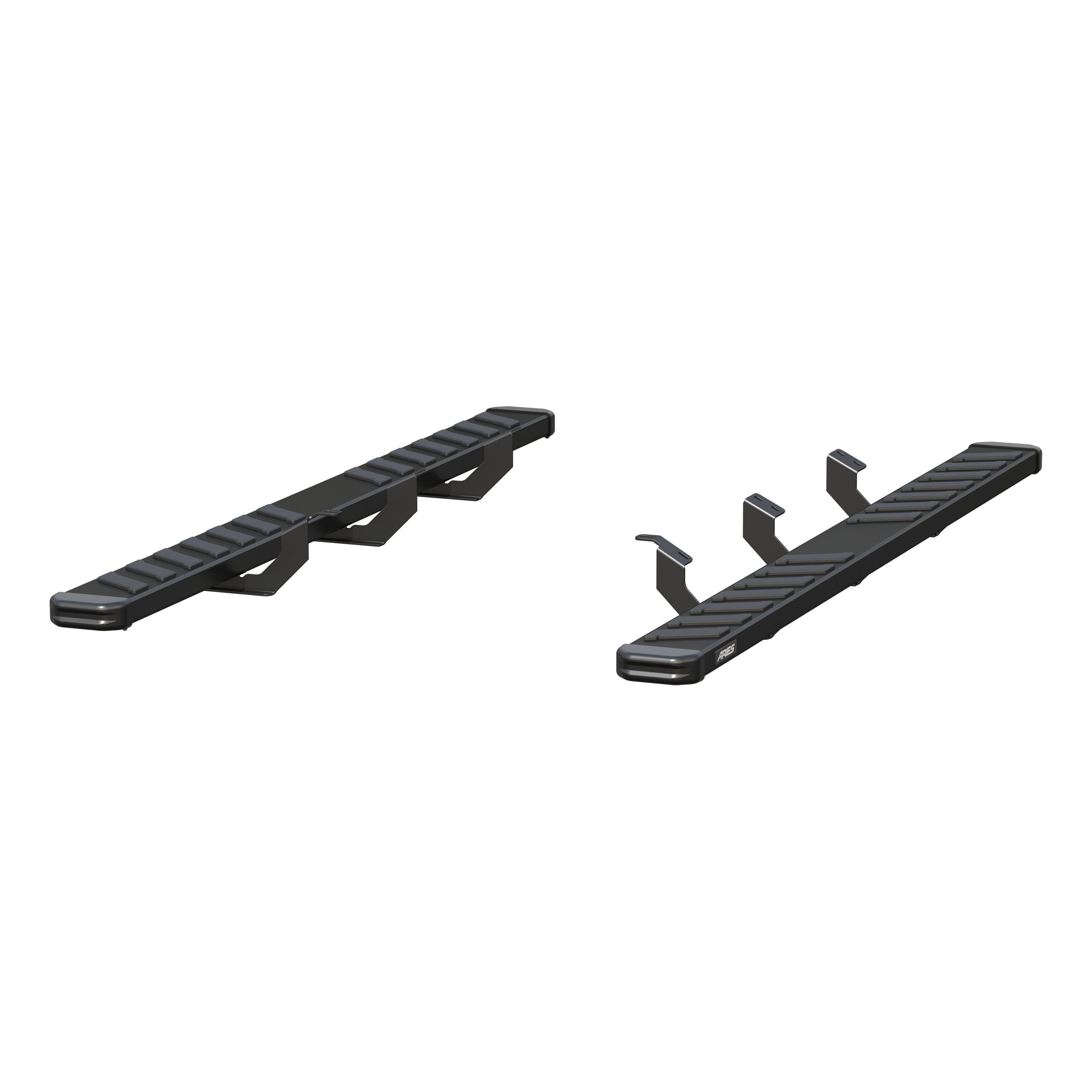 Upgrade your vehicle with the perfect balance of bold style and everyday functionality. The ARIES® NovaTrac™ Running Boards are engineered to offer a sleek, OE-inspired look while delivering superior strength and safety for every journey. With their 6" wide, streamlined profile, NovaTrac™ running boards offer safe footing without sacrificing style. Each running board is reinforced with extra-wide, non-skid step pads, designed to provide secure traction no matter the weather. Built from rigid steel with a carbide black powder coat finish, NovaTrac™ running boards combine lasting shine with exceptional rust and corrosion resistance, ensuring years of dependable use. Durable TPO plastic end caps add a refined finishing touch, while enhancing resilience against wear and tear. Whether you're upgrading for function or style, NovaTrac™ running boards offer an easy, custom solution for your vehicle. VersaTrac™ mounting brackets sold separately.