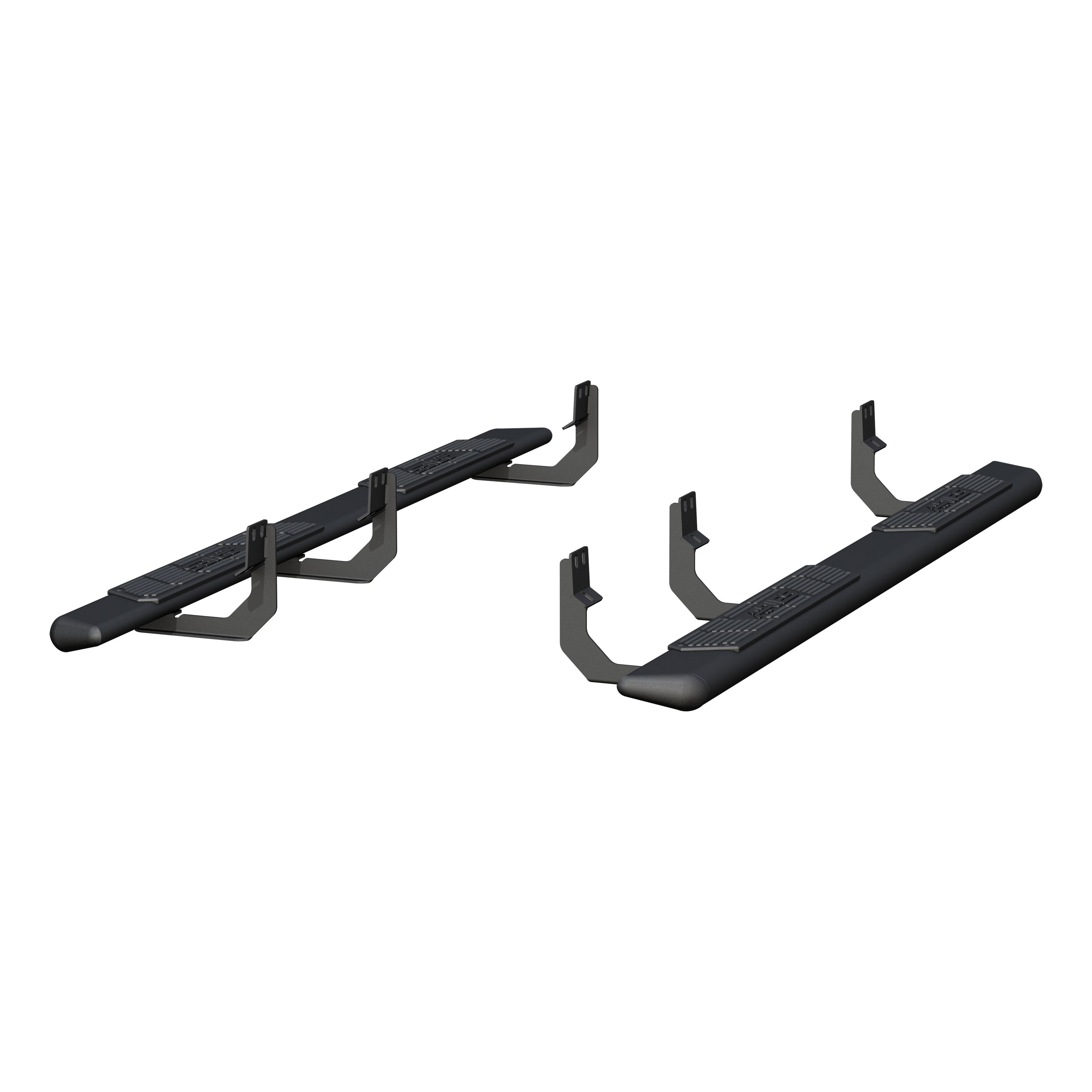 Modern trucks and SUVs are as much about power as they are style. Don't settle for second-rate side steps on your shiny new ride. Give your truck the elegant style, modern functionality and long-lasting durability it deserves with ARIES AscentStep® running boards. These running boards are engineered with a sleek teardrop shape, unique dual-constructed step pads, a strong and corrosion-resistant build and a no-drill custom fit. AscentSteps® are truly designed to be running for the modern truck. They feature a unique teardrop-shaped tube profile that sets them apart from similar oval side steps. The boards measure 5-1/2® wide and have rounded, blended end caps for a seamless, eye-catching accent on the truck. The step pads of these truck running boards are also highly unique, not only adding to the distinguished style but also providing reliable safety when entering or exiting the vehicle. The step pads are a two-part construction, consisting of a polyethylene tread and a metal overlay. The poly tread protrudes through the overlay, providing an unmistakable look and dependable non-skid traction. The treads are also angled, adding a sleek look to the boards. The stainless steel overlay provides a protective barrier for the steel boards underneath, easily resisting corrosion despite scuffs, scratches and marring from frequent foot traffic. AscentStep® running boards are built for rigidity and long-lasting weather resistance. They are constructed from high-strength steel to give you a solid step up. To protect the running boards from rain, dirt, snow and the other elements, they are covered in a highly durable carbide black powder coat finish. The powder coat keeps the boards resilient to rust and corrosion, and it is also scratch- and scuff-resistant to maintain a clean finish. To ensure that ARIES AscentStep® running boards are truly a modern solution for your vehicle, each set is designed for vehicle-specific installation. This means that the brackets, the board length and the position of the step pads are all customized to precisely match each year, make and model. This particular set of custom running boards is designed to fit select years of the Toyota Tundra crew cab (see application information to verify compatibility with your year, make, model and style). AscentStep® running boards are equipped with the VersaTrac® installation system. VersaTrac® uses vehicle-specific brackets to mount onto the truck without any drilling or tedious modifications required. Additionally, VersaTrac® brackets are compatible with multiple running boards and side steps. With the brackets installed, any running board with the VersaTrac® system can be mounted on the vehicle with ease. You can customize the look of your vehicle and easily change the look any time.