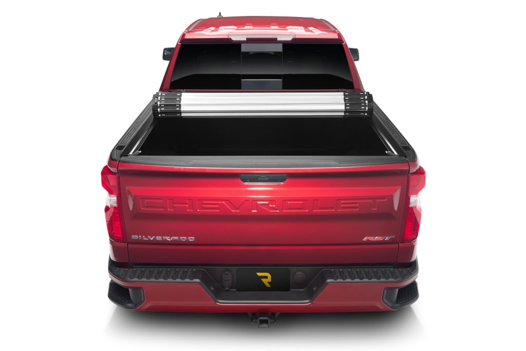 The Revolver X2 hard rolling truck bed cover features exclusive automatic rotational locking rails that secure the cover the entire length of the bed on each side. This hard aluminum roll-up cover easily rolls up with one-handed operation and allows use of every inch of the truck bed without blocking your rear window. This cover does it all with unrivaled strength, security and style.