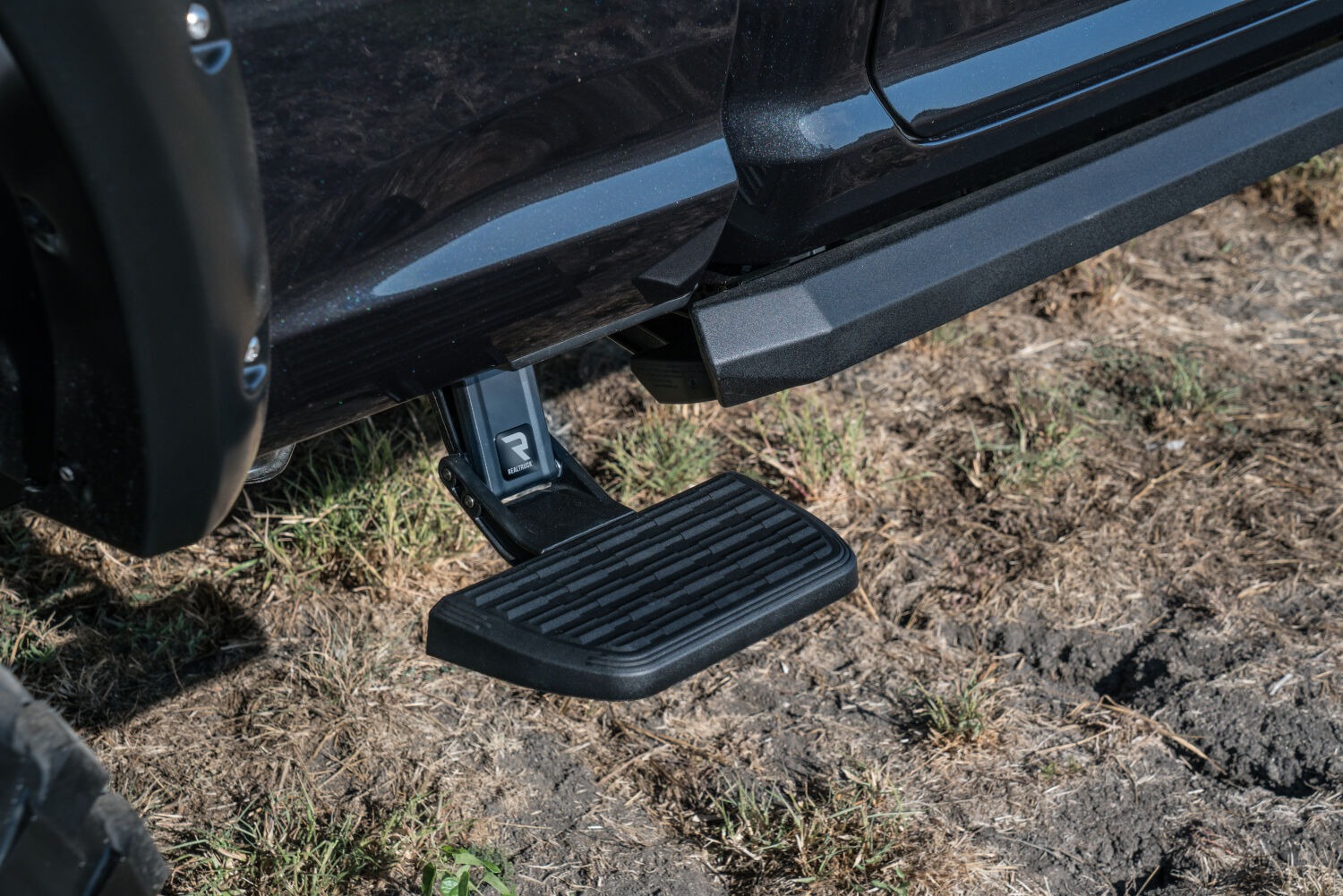 The BedStep 2 is a side-mounted, retractable truck bed step that installs just behind the cab—between the cab and rear wheel—on either side of your truck bed. It flips down or retracts using a simple foot nudge, allowing safe and easy access to your bed, toolbox, or cargo area.