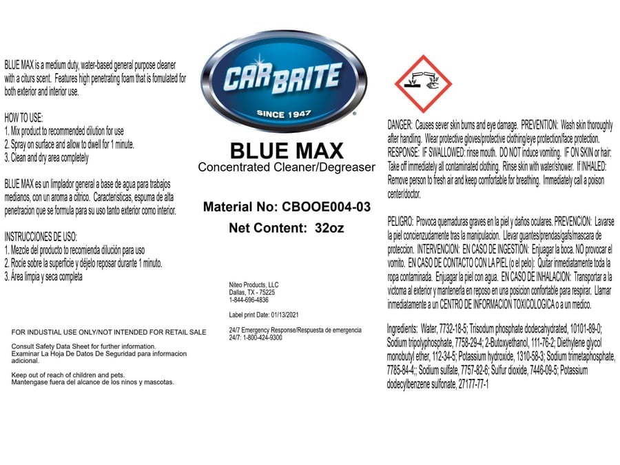 Car Brite Secondary Safety Labels - Blue Max Cleaner/Degreaser