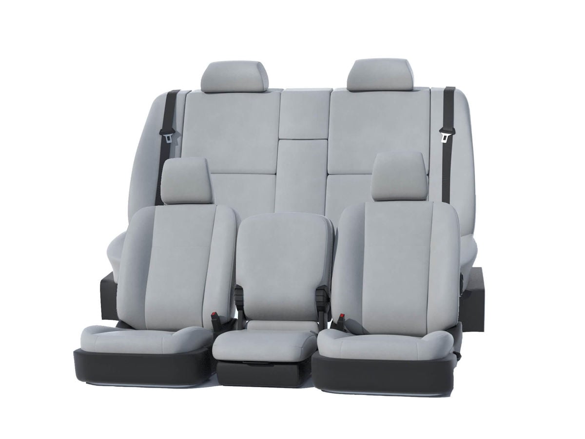 Precision Fit Custom Front Row Seat Covers - With solid bench seat with molded headrests with manual controls with dual electric lumbar with center armrest with drink tray cutout with seat belt cutouts without seat airbags
