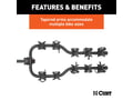 Whether you are an avid mountain biker or a casual rider, you will want CURT along for the ride. CURT bike racks offer both versatility and quality and are available in several different styles to fit your needs. CURT premium bike racks come with an anti-wobble shank for better bike security, foldable arms for a compact design and a tilt-away feature for easy rear vehicle access. One feature that sets the premium bike rack apart from others is its tapered arm design. CURT premium bike racks are very accommodating to different types of bikes, having tapered arms to fit a range of bike sizes. This makes them an especially attractive option for families with younger children. All CURT premium bike rack comes with a durable powder coat finish, built-in reflectors and non-scratch rubber cradles. This model features a maximum load limit of 225 lbs. and is able to hold up to five bikes at a time.