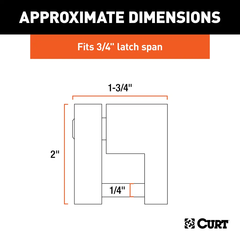 This coupler lock features a compact design to keep the pin well protected from tampering. It comes with a brass finish and offers a 1/4" pin to fit a max span of 3/4". All CURT coupler locks are made to fit latch-type couplers and include two keys. Protect your boat, your camper and even your utility trailer the right way with a CURT coupler lock.