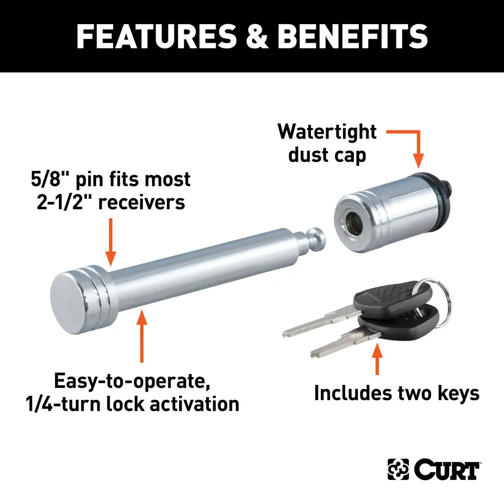 Curt Trailer Hitch Lock, 5/8" Pin Diameter, Fits 2 or 2-1/2" Receiver