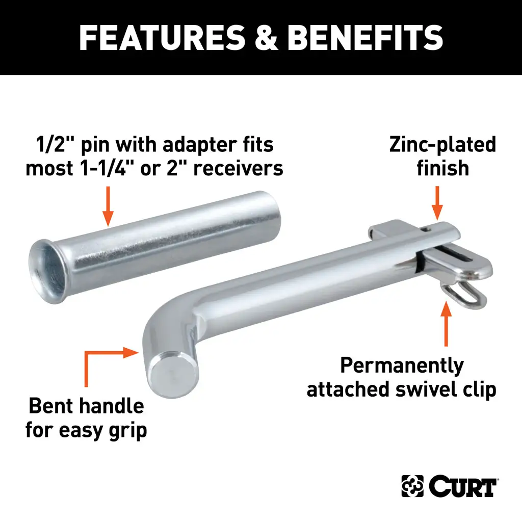 Curt Swivel Trailer Hitch Pin, 1/2" Diameter with 5/8" Adapter, Fits 1-1/4 or 2" Receiver