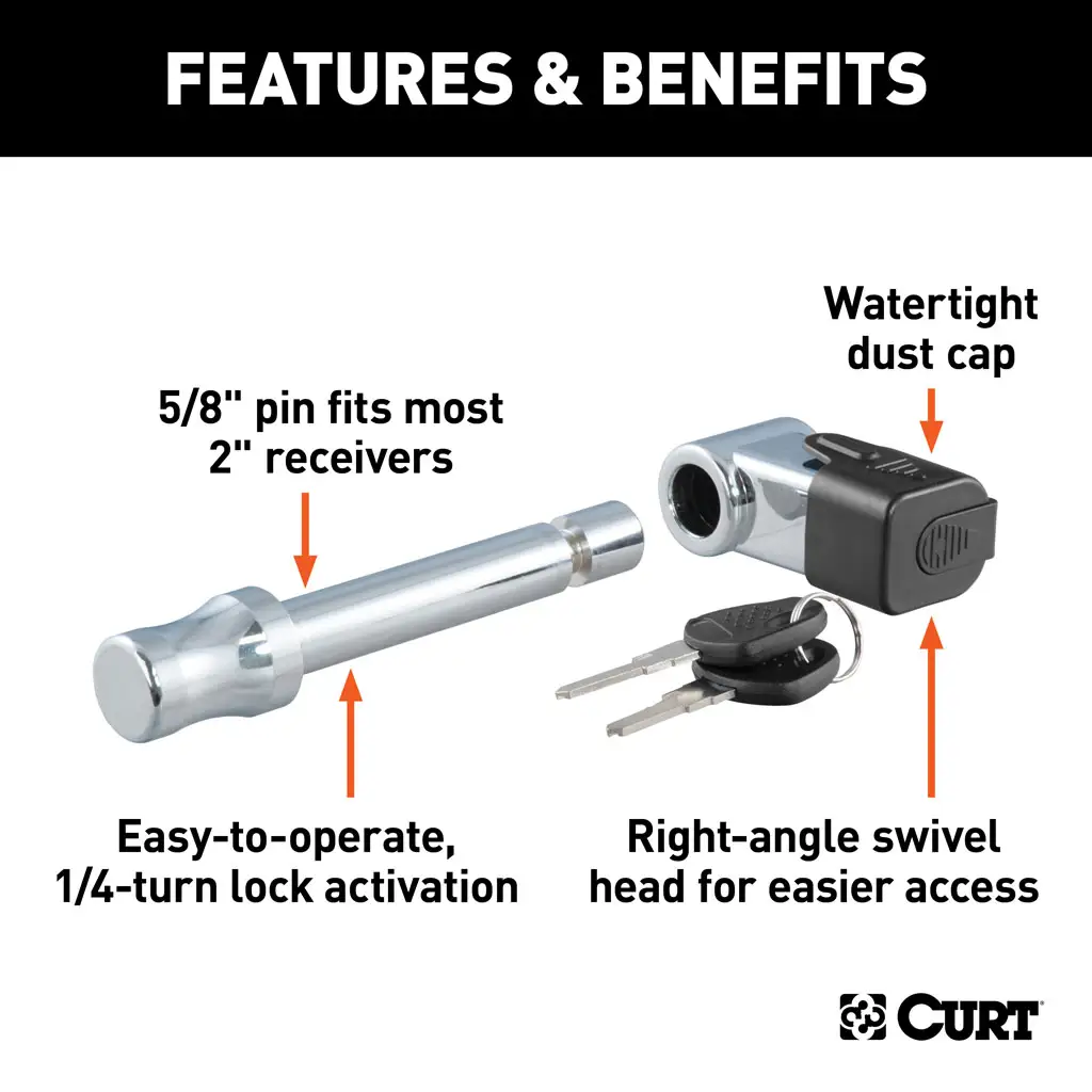 Curt Right-Angle Trailer Hitch Lock, 5/8" Pin Diameter, Fits 2" Receiver