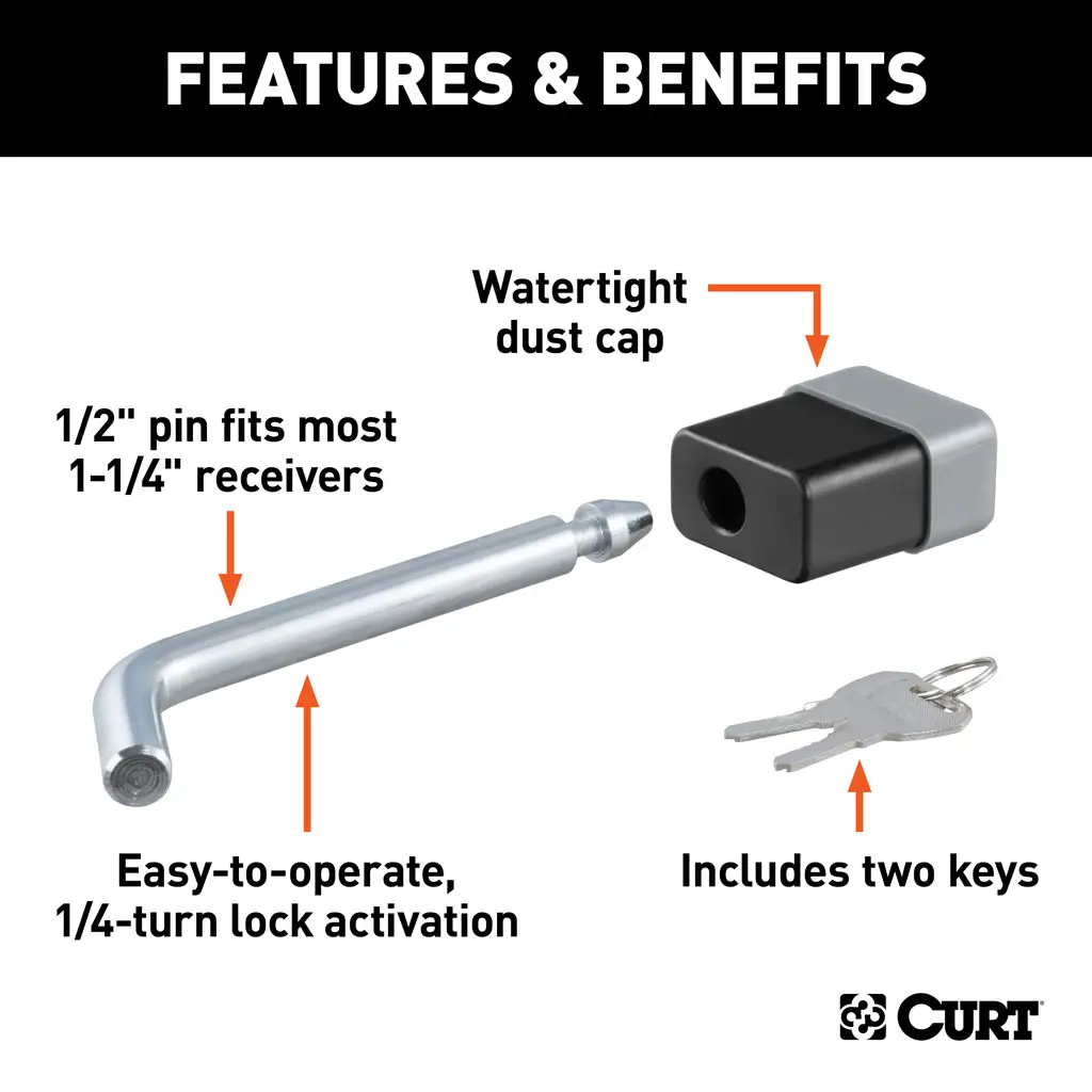Curt Trailer Hitch Lock, 1/2" Pin Diameter, Fits 1-1/4" Receiver