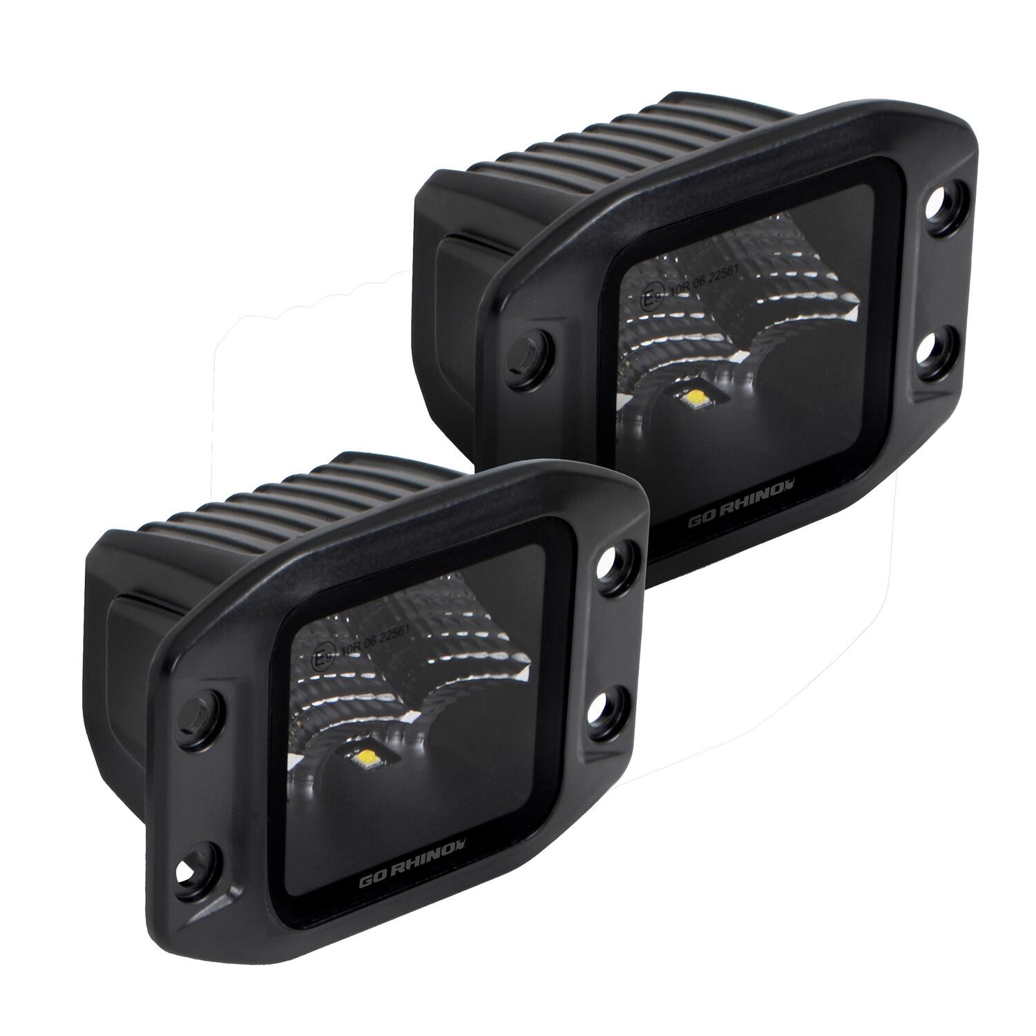 Go Rhino Blackout Series Lights - 3x3 Cube Flood Light Kit - Flush Mount - Pair
