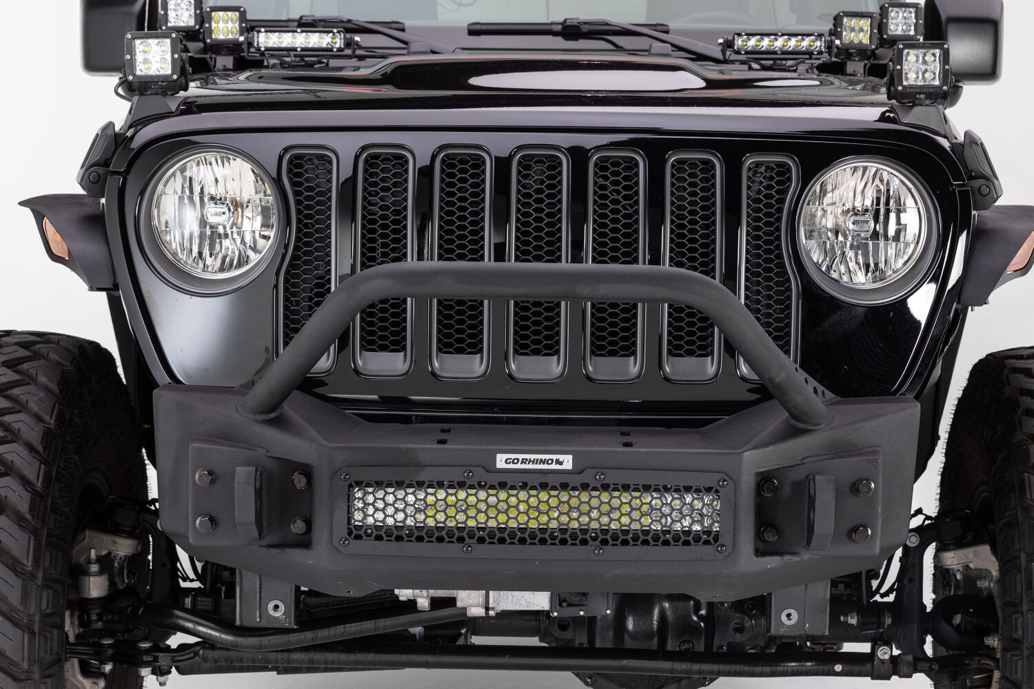 Go Rhino Rockline Front Stubby Bumper - w/Overrider Light Mount Bar