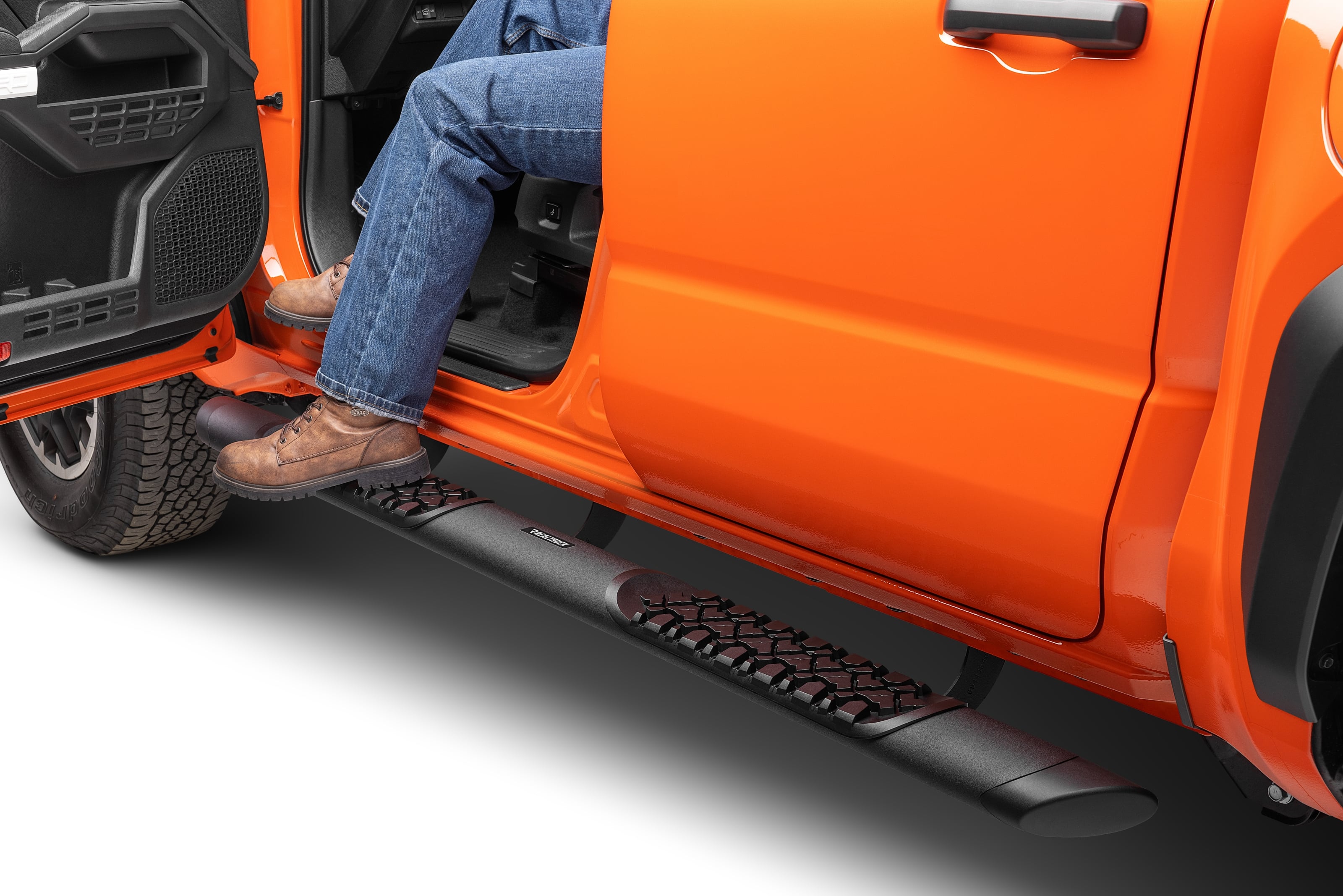Constructed of corrosion-resistant aluminum,and finished with a textured black powder coating, Go Rhino's V-Series V3 Side Steps offer strength and rugged good looks while reducing the risk of slipping when stepping up into your vehicle. The 5" wide ellipse-shaped boards feature anti-slip polymer step pads with a multi-dimensional tire tread pattern so rain, snow and slush easily drain. Each V-Series V3 board is fortified with a dual core full length extrusion allowing the board to support up to 300 lbs per side (600 lbs per side for 4-door vehicles).