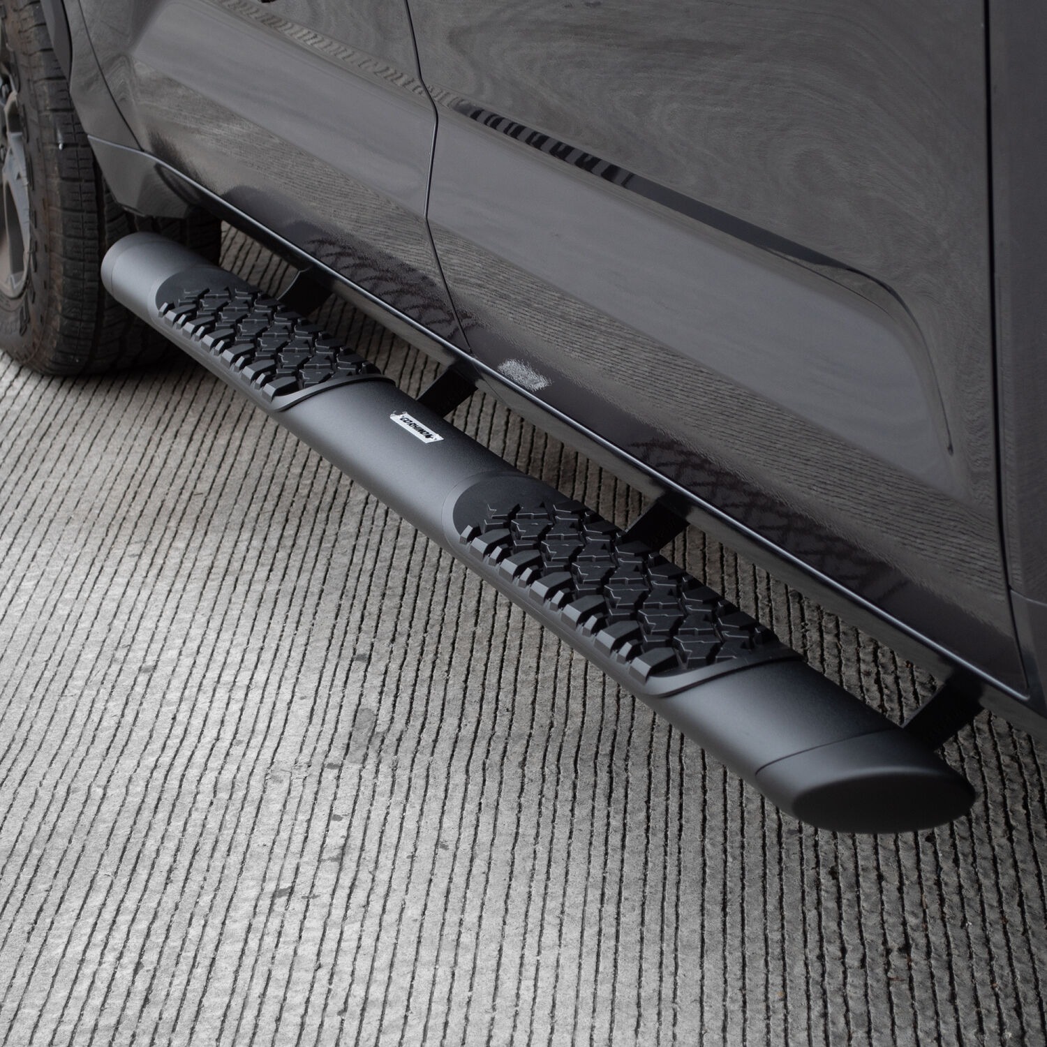 Constructed of corrosion-resistant aluminum,and finished with a textured black powder coating, Go Rhino's V-Series V3 Side Steps offer strength and rugged good looks while reducing the risk of slipping when stepping up into your vehicle. The 5" wide ellipse-shaped boards feature anti-slip polymer step pads with a multi-dimensional tire tread pattern so rain, snow and slush easily drain. Each V-Series V3 board is fortified with a dual core full length extrusion allowing the board to support up to 300 lbs per side (600 lbs per side for 4-door vehicles).