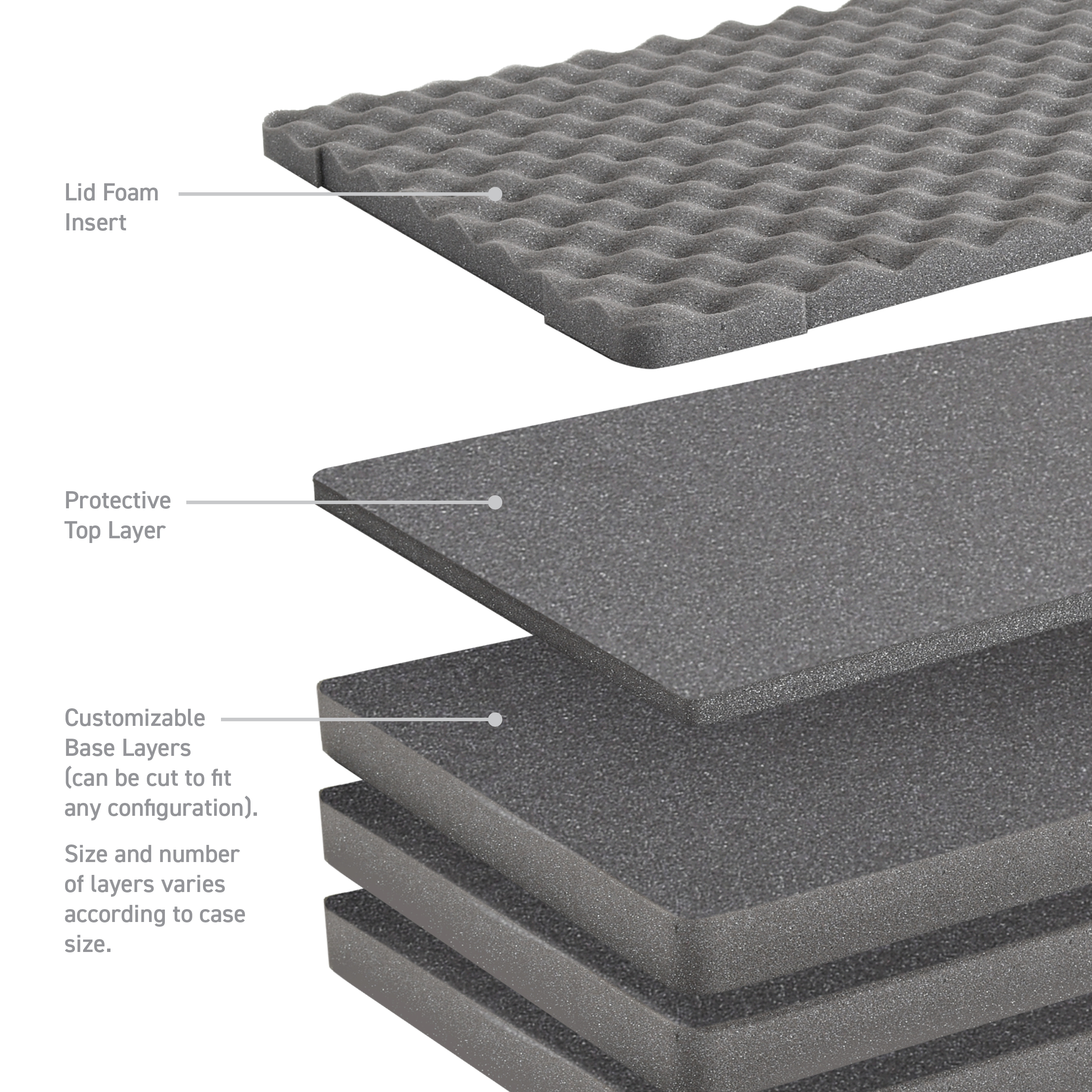 The replacement foam sets are precut for a specific case. Lay the item you wish to put into the case on the foam and tape or mark the foam to cut away what is needed. Allow at least one inch of foam between what is installed and the wall of the case.​