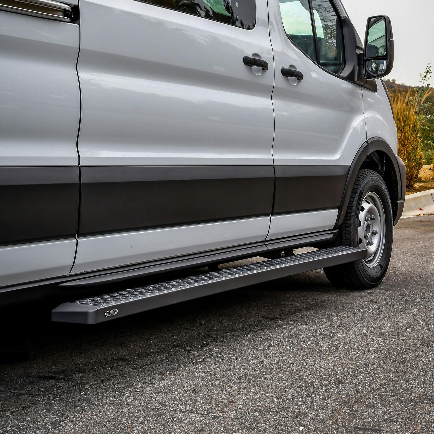 Westin's Grate Steps Running Boards are engineered to provide maximum traction without sacrificing style. The 6 1/4" step surface width features an aggressive 1/4" high punched tread allowing traction in any weather condition. The unique serrated edges help clean dirt, snow and mud off your boots to keep truck cab clean. Grate Steps Running Boards feature stylishly formed and fully welded ends with a custom die-cast riveted logo badge. E-coated base coat provides long lasting corrosion protection which far surpasses that of the competition. Solid 1-piece construction makes the Grate Steps Running Boards ideal for construction, commercial, vans and utility use. Available in universal lengths (54", 68", 75", 79", 83", 86" and 90") with vehicle specific mount kit required, sold separately. Available in textured black finish.