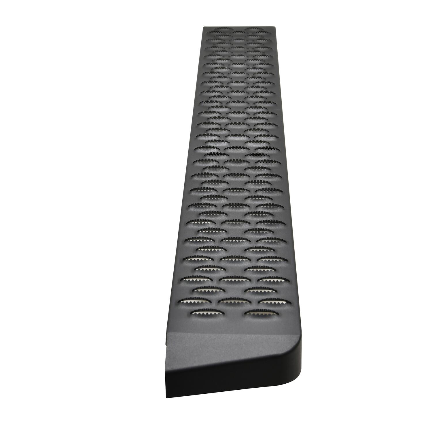 Westin's Grate Steps Running Boards are engineered to provide maximum traction without sacrificing style. The 6 1/4" step surface width features an aggressive 1/4" high punched tread allowing traction in any weather condition. The unique serrated edges help clean dirt, snow and mud off your boots to keep truck cab clean. Grate Steps Running Boards feature stylishly formed and fully welded ends with a custom die-cast riveted logo badge. E-coated base coat provides long lasting corrosion protection which far surpasses that of the competition. Solid 1-piece construction makes the Grate Steps Running Boards ideal for construction, commercial, vans and utility use. Available in universal lengths (54", 68", 75", 79", 83", 86" and 90") with vehicle specific mount kit required, sold separately. Available in textured black finish.