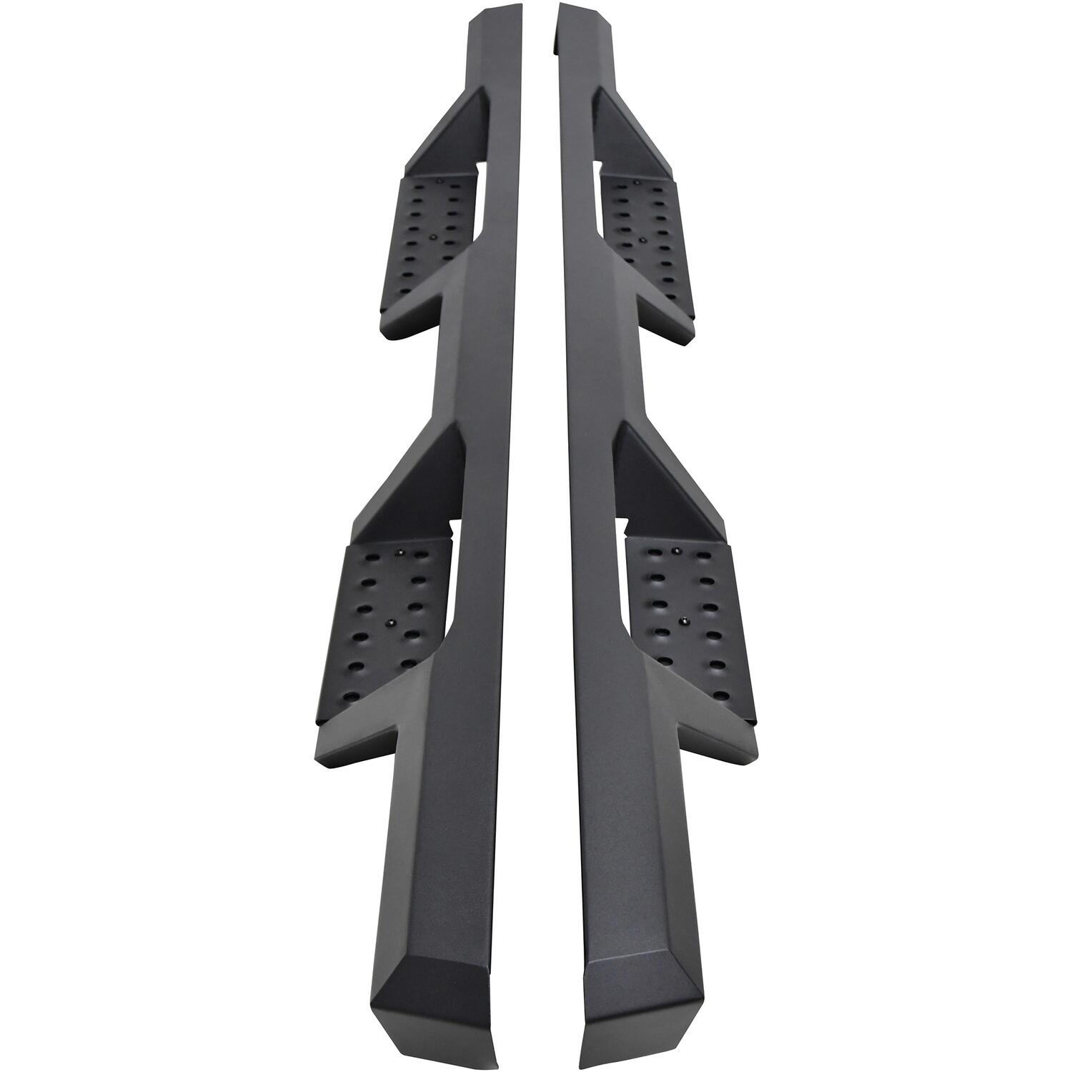 Westin HDX Drop Steps provide the rugged look and function that truck owners need and want. The steps are a solid 1-piece steel construction and heavy duty punch plates creating high traction step areas. The HDX Drop Steps also feature Westin's notched bar design which allows for more than 2 inches of additional toe/heel placement over other steps. These steps come in a textured black finish. The HDX Drop Steps have vehicle specific applications and include a vehicle specific mount kit, installation hardware and instructions. Westin backs these steps with a 3 year warranty.