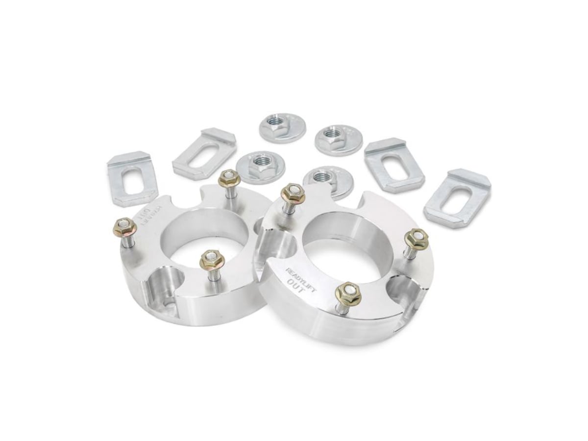 ReadyLIFT offers an all-new 2-inch premium-grade leveling kit for the brand new 2021-2023 Ford F-150 pickups. The new 2021-2023 F-150 has many new factory features when compared to the 2015-2020 model. Some of those new innovations can be found on the F-150 chassis in the form of different suspension components. While some changes at first observation, the changes were profound enough to command an all-new ReadyLIFT leveling kit created by our engineering team. The all-new 66-2120 F-150 leveling kit provides 2" of front leveling lift which is ideal for a true visually level stance on this new Ford pickup. Constructed from aircraft-grade 6061-T6 billet Aluminum and precision-machined providing an exact fit with the proper amount of strut offset for 2" of lift, this new leveling kit also includes new alignment cam plates and cam nuts ensuring a perfect alignment and geometry after installation. Leveling kit 66-2120 fits both 2WD/4WD 2021-2023 F-150 pickups in most trim packages and provides a nice level stance while maintaining the factory ride and handling. Leveling kit 66-2120 works with all the newest safety, security and capability features available on these new F-150 trucks. When it comes to aftermarket wheels and tires, our 66-2120 leveling kit will allow you to install up to a 295/60-20 tire on a 20x9 +18 wheel with no trimming required. NOTE: Not compatible with Ford BlueCruise