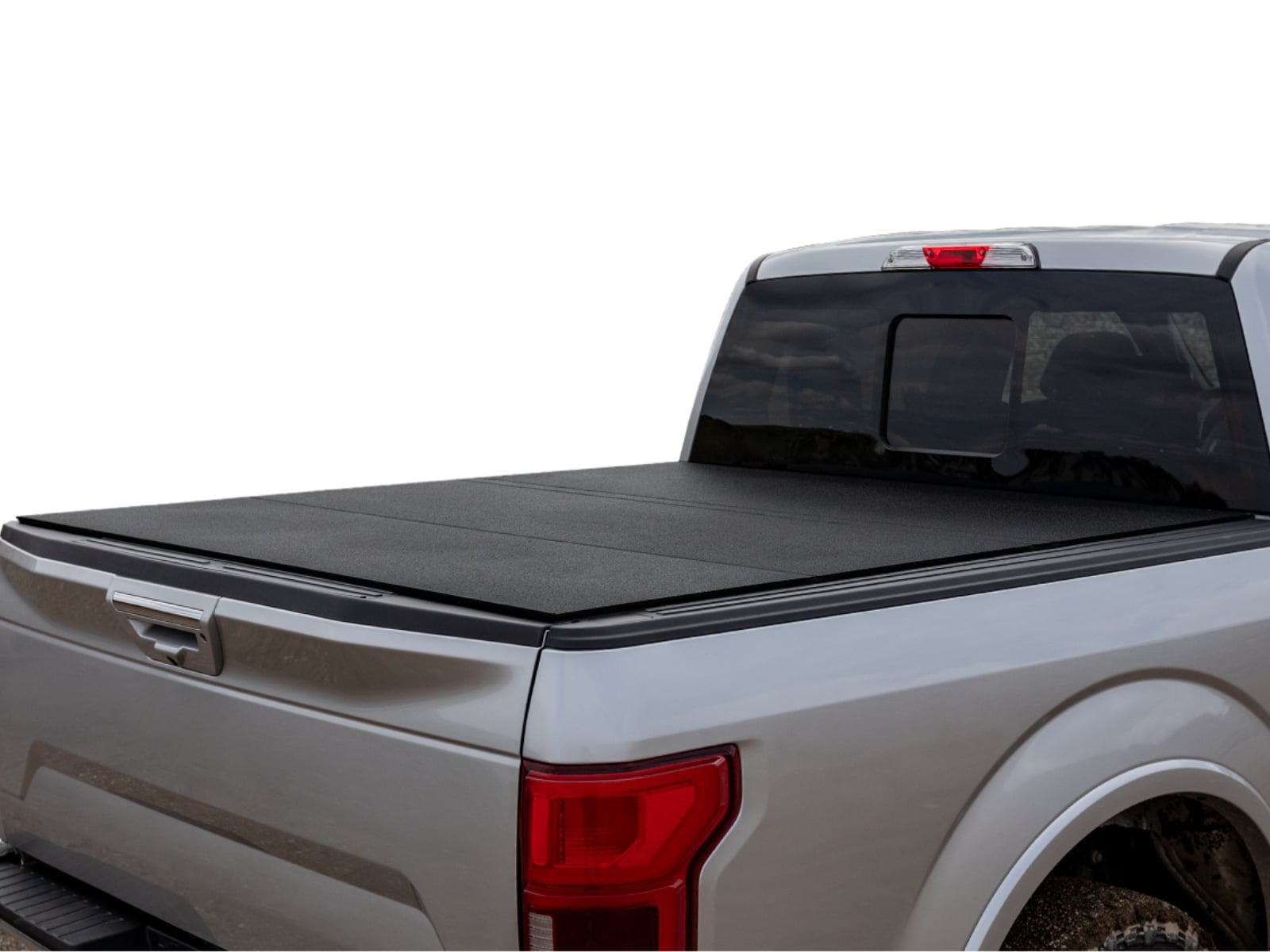 The LOMAX is a low-profile, lightweight hard tri-fold cover built with aluminum panels and extruded-channel reinforcement—typically weighing around 40–60 lb depending on the model.  It sits flush with the bed rails (< ½″ above), maintaining a sleek, OEM-like appearanceAvailable in various finishes: Black urethane finish, diamond plate, carbon fiber look, and professional series variants.