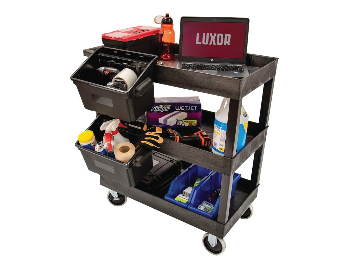 Add functional storage to your Luxor tub carts with the Outrigger Utility Cart Bin 2-Pack. These portable bins enhance convenience and efficiency by adding a combined 6 gallons of versatile, removable, supplemental capacity to your cart.