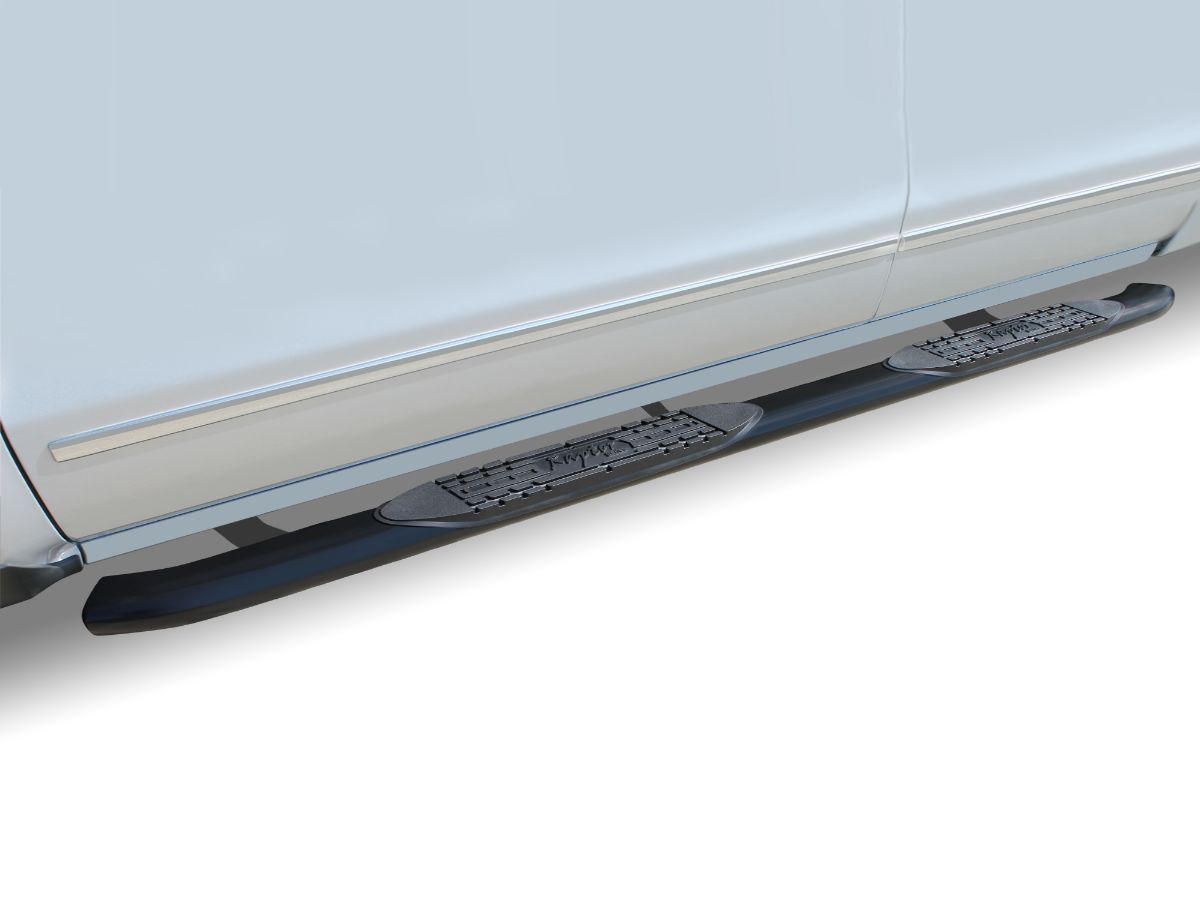 Raptor OE Style Curved Oval Step Tube - Black E-Coated - 4 in. - Cab Length - Cab Mount - Crew Cab