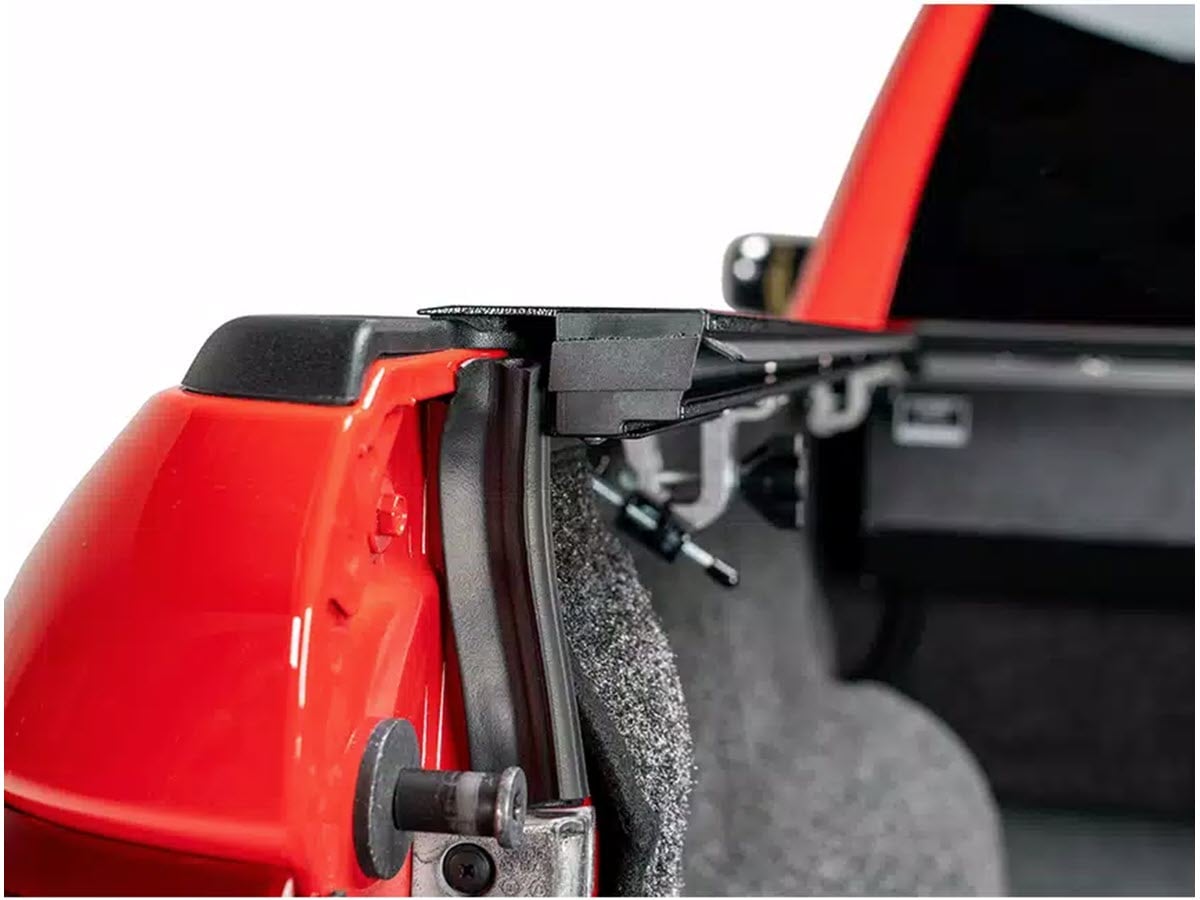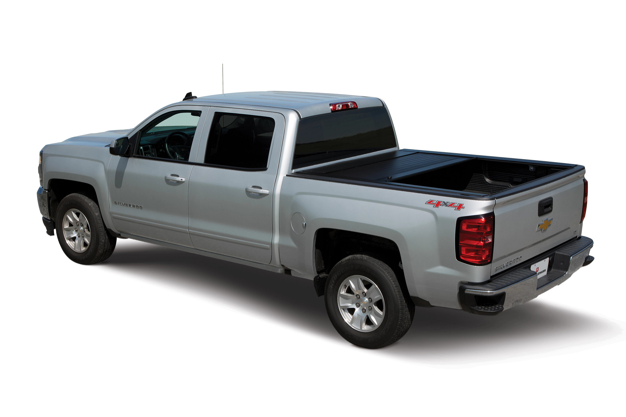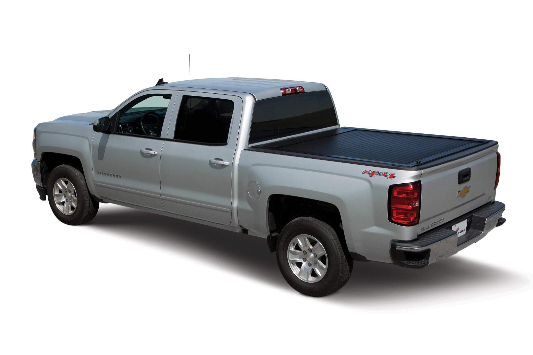Pace Edwards JackRabbit retractable hard tonneau covers retract automatically with the turn of a knob, and close easily using a pull strap. The covers open and close without needing the key, have locking positions every 12 in., and automatically catch into each position as you pull them forward. They also have a low-profile, aerodynamic design that is 100 percent flush-mounted with textured finish rails and top cover. Featuring a clamp-in design and for easy accessibility, the handle and lock are mounted to the driver side for convenient, easy use.