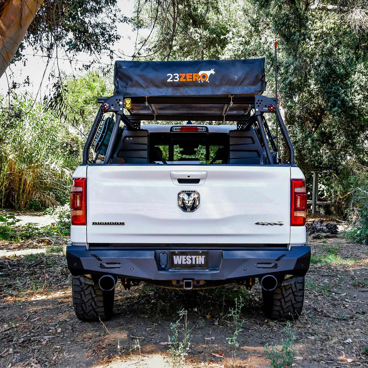 “High and Tight” best describes the great looking new Pro-Series Rear Bumpers from Westin.This all new “off road style” rear bumper features a light weight, slim, one-piece design, adding a modern, aggressive look to your truck. Built to improve ground clearance and departure angles when driving in more rugged terrain. The Pro-Series Rear Bumper is fully compatible for OEM parking sensors, and hitch. It also includes two LED license plate lights and can accommodate LED back up lights (sold separately). Featuring a textured black finish with an e-coated base coat, providing long lasting corrosion protection from the elements with easy bolt-on installation. Just add the original Pro-Mod Front Bumper, and your transformation from stock to custom is complete.