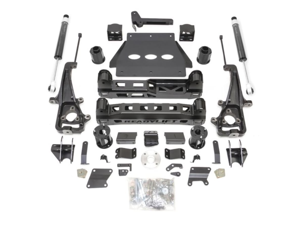 ReadyLIFT® is proud to announce that our long-awaited 6 inch lift kit 5th gen 2019-2022 Ram 1500 factory air suspension trucks is now available! After dedicated development and long-term testing, we are now shipping our Ram 1500 Big Lift Kit for the Ram customer seeking unmatched performance, style and durability. The all-new 44-19621 6" lift kit is a great option for 5th gen Ram 1500 owners who want a great riding tall stance capable of accepting 37" tall tires. Our engineers are delighted with the development of this kit and its many great features that make it the best 6" lift kit on the market! The 44-19621 lift kit includes many great features like Falcon 1.1 Monotube rear shocks rear control arm brackets which combine to better capture small bump sensitivity and mid-stroke support. Laser-cut heavy-duty steel front cross members and differential drops retain factory geometry while providing proper differential rotation to ensure there is no driveline vibration when in 4WD or Auto-4HI. This all-new Ram 1500 6" lift kit adopts all the important elements of a premium lift kit to ensure the truck rides and drives remarkably. Rear track bar bracket, Falcon 1.1 Monotube rear shocks, longer rear sway bar end links, heavy-duty cast iron knuckles, and even new thick steel skid plates are just a few of the ingredients contributing to an amazing driving experience on up to 37x12.50 tall tires on 9" wide wheels with 0 offset. (See tire details below). Note: This kit is for the RAM 1500 with factory air ride. This kit is NOT compatible with standard suspension or non-air ride suspension equipped models, (2) diesel engine applications, or (3) Ram TRX.