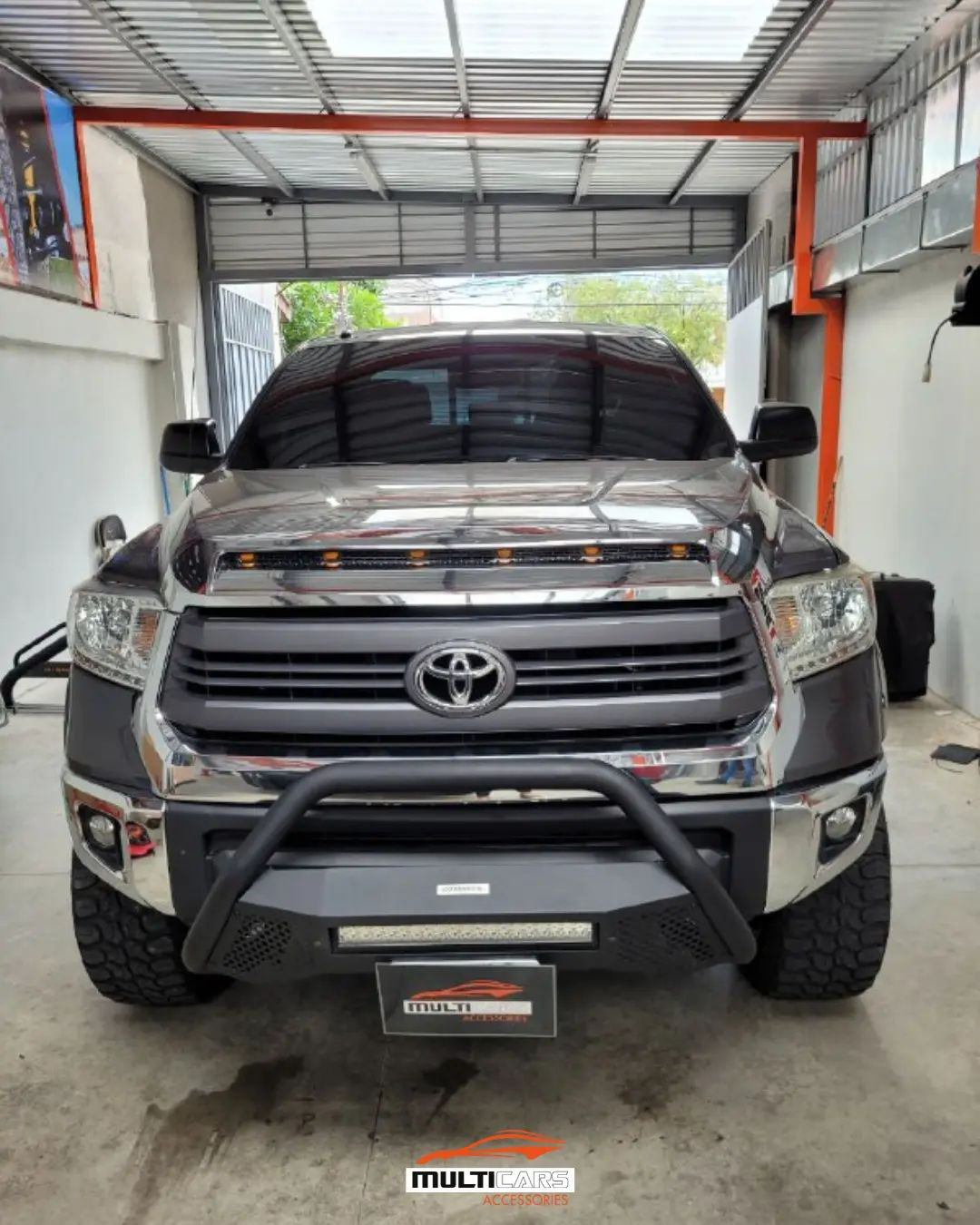 Go Rhino's RC4 LR Bull Bar is a modern, sportier take on classic truck front protection. The 2.5" diameter tubular steel frame features a steel skid plate with a stylish hexagonal cut out patter, a slot for a 20" single row LED light bar, and pre-drilled holes along the center crossmember for additional auxiliary lighting. Kit includes bull bar and mounting brackets. RC4 LR Bull Bars come with a Limited Lifetime warranty on materials and construction and a 5 year warranty on the Textured Black Finish.