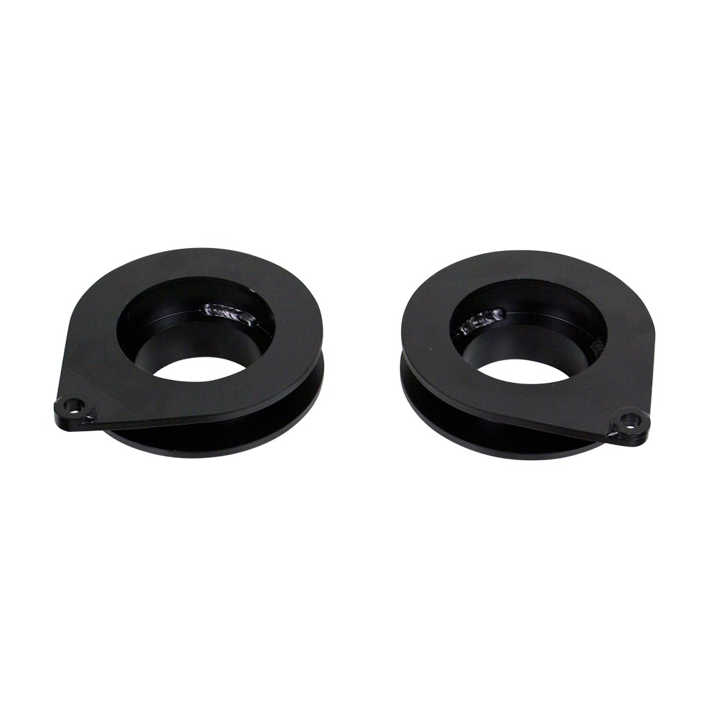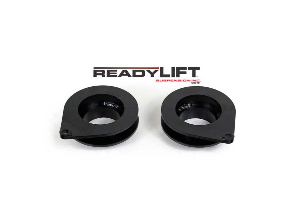 These new Rear Coil Spring Spacer Kits include a pair of CNC-machined 6061-T6 aircraft-grade billet aluminum rear coil spring spacers that easily install under the OEM rear coil spring. These ReadyLift rear spacers are ideal for adding a slight rake to a vehicle for towing or hauling, or if you have installed a leveling kit to fit larger wheels and tires in the front, and want to bring the back end up for a raked stance. ReadyLift Rear Coil Spring Spacers are designed to work with your ReadyLift Suspension Leveling Kit or by themselves. Like all ReadyLift products these block kits come with our Lifetime Warranty. Installation time is approximately 1 plus hours. Do not settle for cheap plastic or urethane rear spacers that will split over time. Demand the best quality suspension product for your expensive SUV or SUT. Demand ReadyLift CNC-machined billet aluminum rear coil spring spacers. Your vehicle deserves the best.