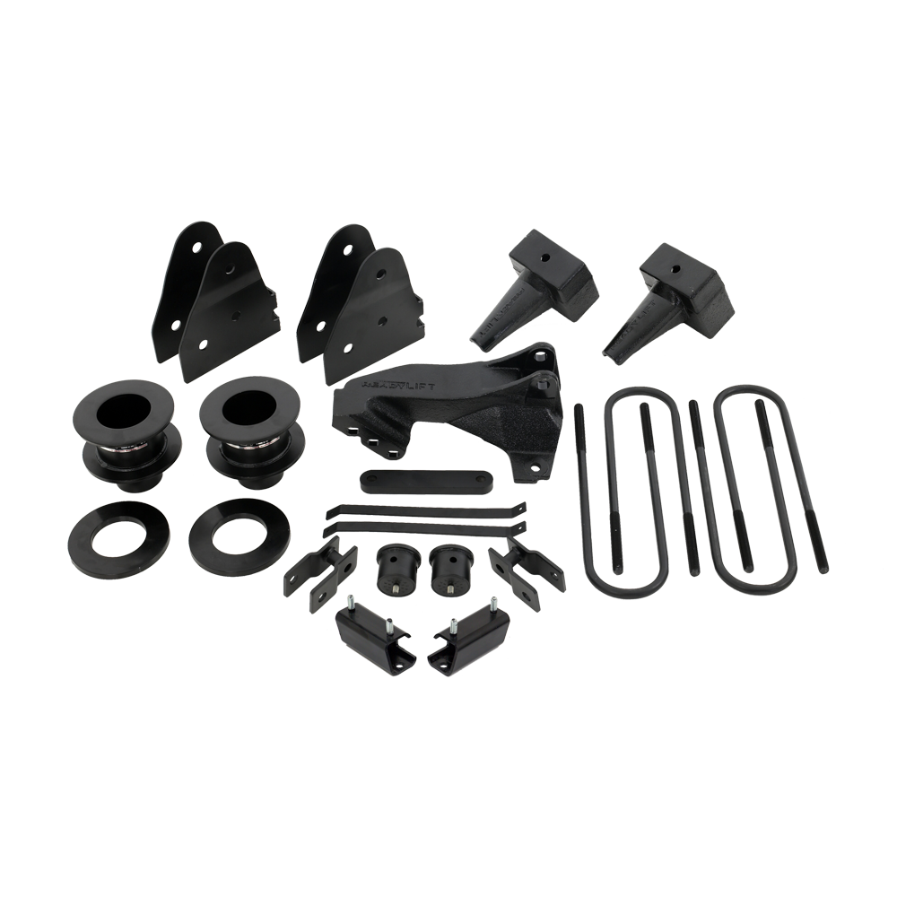 ReadyLIFT Suspension has engineered a line of suspension products made to fit the 2011-2016 Ford Super Duty equipped with diesel engines. Our 2011-2016 F250 4WD 3.5"F/1.5"-3.0"R SST Lift Kit provides the exact amount of front and rear lift while allowing for wheel and tire combinations up to 35" and keeping the smooth OEM ride and drivability. This ReadyLIFT SST Lift Kit is the perfect Lift Solution for the 2011-2016 Ford Super Duty trucks with a diesel engines and a two-piece drive shaft. Does not fit the 2011-2016 Super Duty with the 6.2 liter GASOLINE engine. The 69-2531 3.5"F/3.0"R SST Lift Kit includes 3.5" powdercoated steel coil spring spacers, sound isolators, shock extensions, sway bar frame mount spacers, bump stop extensions, carrier bearing spacer, track bar relocation bracket, radius arm drop brackets and OEM-style 5.0" Rear Lift Blocks for a great looking mild lift system that will maintain your factory ride! NOTE: This kit is for use on trucks with a two-piece drive shaft. If you have a one-piece drive shaft, use kit 69-2538. NOTE: The lift blocks in this kit are not designed to work with aftermarket or factory add-on air spring/load leveling kits that attach to the bump stop tangs. Use of this type of air bag system will void all block warranties and can cause failure of the block bump stop tang. Diesel engines only. Gas engine trucks will sit nose high. NOTE: Tow Package vehicles may require longer U-bolts or removal of top overload springs.