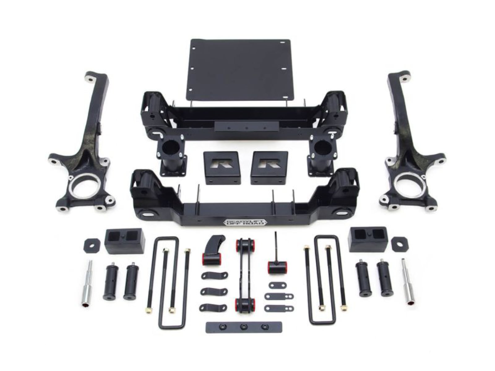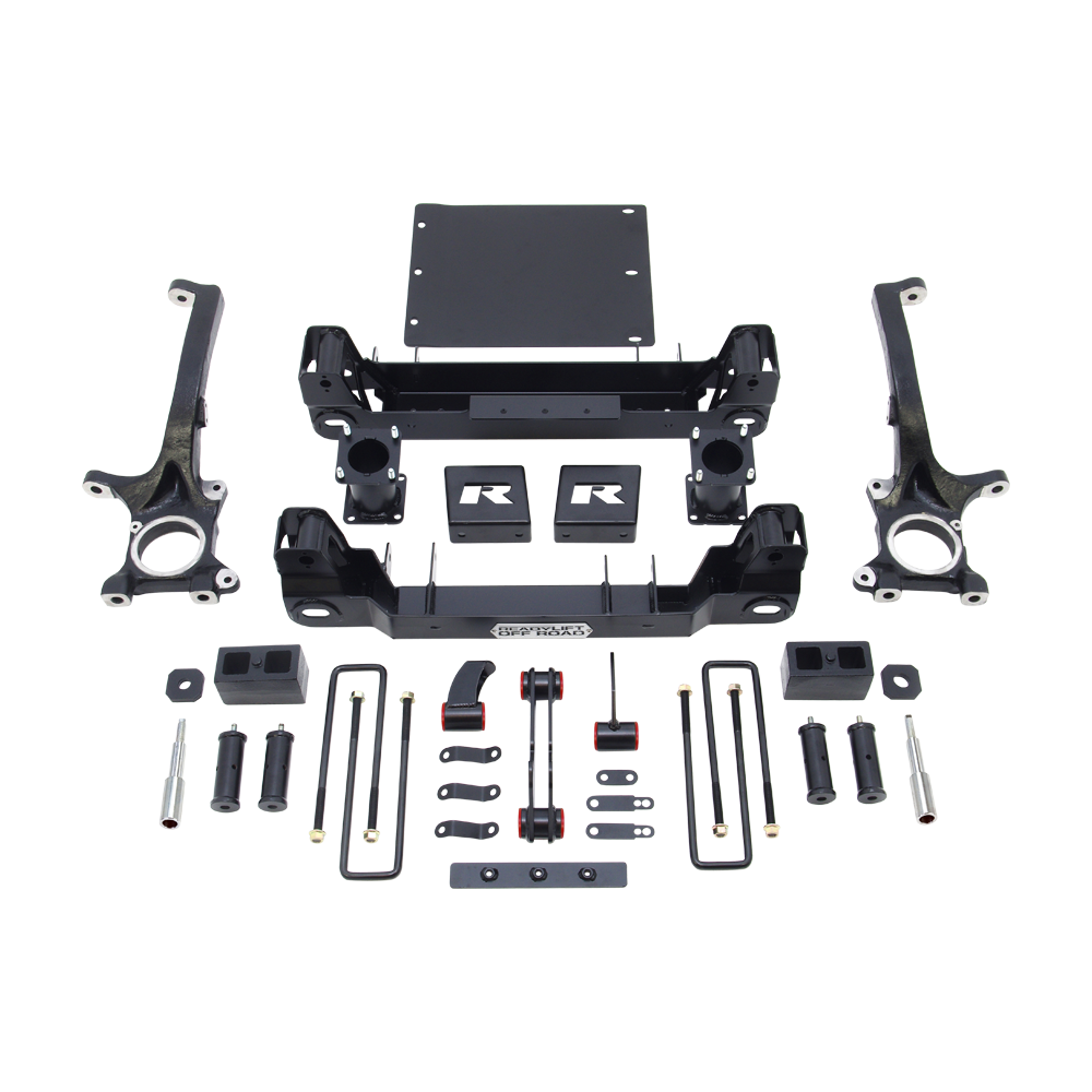 TRD Pro Plus 4 Complete Lift Kit! ReadyLIFT 4" Lift Kit Available For 2015-2021 Toyota Tundra TRD Pro Trucks! ReadyLIFT delivers a great Pro Plus 4 lift kit that will provide 4" of front lift to TRD Pro Tundra trucks that come factory with 2" of front lift. That equals the same height as our 6" lift kit on a standard Tundra. And even better, this kit allows you to retain use of the factory Bilstein/Fox coil-overs and reservoir rear shocks! That's right, this great new system retains use of ALL of the factory TRD Pro suspension components. Note: For use only on 2015-2021 Tundra TRD Pro w/ Bilstein/Fox coilover shocks Note: Will not work with the TRD rear swar bar option. Note: Cannot use the factory front skid plate. Note: Factory Wheels - This system will only work with factory 20" wheels - Will not work with some factory 18" wheels. Properly sized aftermarket wheels okay. The 44-5640 Pro Plus 4 inch lift kit for Tundra TRD Pro trucks is packed full of the same great features found in our standard Tundra 6" lift kit! Starting with our ultra strong laser cut, CNC bent, welded and boxed sub frame drop assemblies that not only keep your suspension geometry where it is suppose to be, but also increase your ground clearance 2 inches over the competition! Our unique and precision-designed iron knuckles feature CNC machining to guarantee precise fit while allowing for retention of the factory tie rods. That means no cutting or replacing your tie rods - ever! The 4 inches of lift is created by our innovative and industry-leading offset top mount spacer design. These strong steel spacers attach to the factory Bilstein/Fox coilover/strut - resulting in a factory ride - while positioning the suspension in such a way as to not increase track width. What does that mean? It means your front tires won't stick out further than your rear tires like with other kits. AND it means you can run your stock wheels with stock tires and use your spare tire if needed. That is some serious added value for you! Our sub assembly design features a truly innovative approach to dropping the differential. Our diff drop kit is engineered for easy installation - easiest on the market - and correctly positions the differential to maintain great CV axle and drive line angles. This kit has been engineered around developing and offering a top quality lift solution for Tundra TRD Pro owners. We sought to correct so many of the issues that exist with other Tundra lift kits on the market. With our 44-5640 Pro Plus 4" lift kit you can rest assured you will not be wearing out those tires. Our system is built around maintaining correct alignment and geometry specifications. That is something both you and your installer will love! For the rear this kit includes our time-tested OEM-style cast iron rear lift blocks and longer u-bolts with hardware. Additionally, we also include bump stop extensions all the way around as well as sway bar frame mount brackets to keep the front sway bar in a factory position. And to keep you driving on those high-quality Bilstein/Fox reservoir shocks, we include our popular shock stem extensions that extend the installed length of the shock without altering the compressed and extended length. All of this contributes to an excellent driving and handling suspension system that truly compliments your Tundra TRD Pro truck! How big of a tire can you run? We recommend 35" as the maximum on a 9" wheel with a +25 offset for the least chance of rubbing. (Front mud flaps may need to be removed depending on the tread design of the tire.)