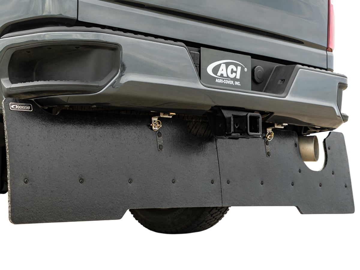 The ROCKSTAR Commercial Tow Flap is a heavy-duty, full-width tow/mud flap system designed specifically for HD (heavy duty) and dually trucks. It mounts behind the bumper (or frame area) and provides broad protection from rocks, road debris, mud, and other hazards that might damage the trailer, truck, or cargo being towed.
