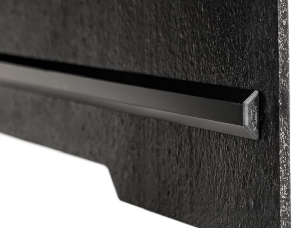 • A black extruded aluminum stabilizing bar / frame helps support the flap and reduce flapping or vibration.