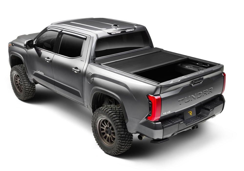 The Roll-N-Lock® E-Series XT™ combines the convenient electric operation of our E-Series tonneau cover with our MaxTrak System, enabling the mounting of T-slot-compatible accessories from leading brands, like Yakima®, Thule®, Rhino Rack®, and more. The E-Series XT Tonneau Cover offers quick and easy operation with reinforced durability and added protection. With the push of a button on the included wireless key fob, this cover automatically opens and closes via its commercial-grade electric motor, enabling hands-free cargo access in seconds. A patented theft-resistant hinge system and torsion spring drive offer a lifetime of smooth operation. Carrying tall gear has never been easier, thanks to the E-Series XT’s limitless locking positions—lock the cover anywhere along your truck bed to suit your unique hauling needs at every turn. The E-Series XT also features an intuitive auto-stop feature, which cuts power to the electric motor if it senses objects in the way. Not only is the Roll-N-Lock E-Series XT intuitive, but also durable. The cover’s robust, dual-layer aluminum construction and corrosion-resistant matte black powder coat finish ensure years of fade and scratch-free service. The ultra-low-profile aluminum canister protrudes only 7.25 inches into the bed, preserving your pickup’s precious cargo space. Integrated weather-proof seals and drain tubes prevent excessive moisture intrusion, keeping your cargo safe and dry. Roll-N-Lock E-Series XT Tonneau Cover comes with a limited 5-year warranty against manufacturing and material defects.