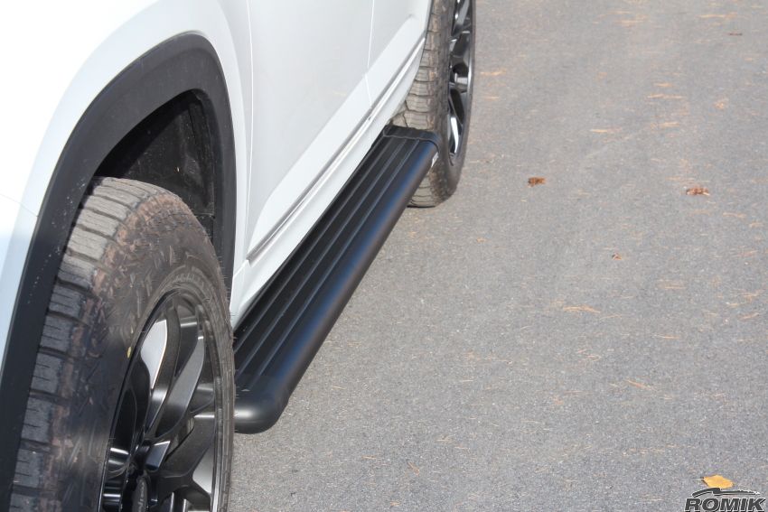 Romik RB2 Luxury Side Step Series are the newest European design from the Romik labs. Upgrade your vehicle’s function and fashion in one easy Step RB2 running boards are made from aircraft quality triple wall aluminum extrusion that are twice as thick as our competitors and are complemented by black end caps with grip assurance technology. With safety and style in mind RB2 will set your vehicle apart from the rest. The Romik RB2 compliments the lines of your vehicle and gives the occupants sure footing. Sold in pairs, the Romik RB2 Running Boards include vehicle specific mounting brackets and hardware. RB2 running boards are backed by a limited lifetime warranty.
